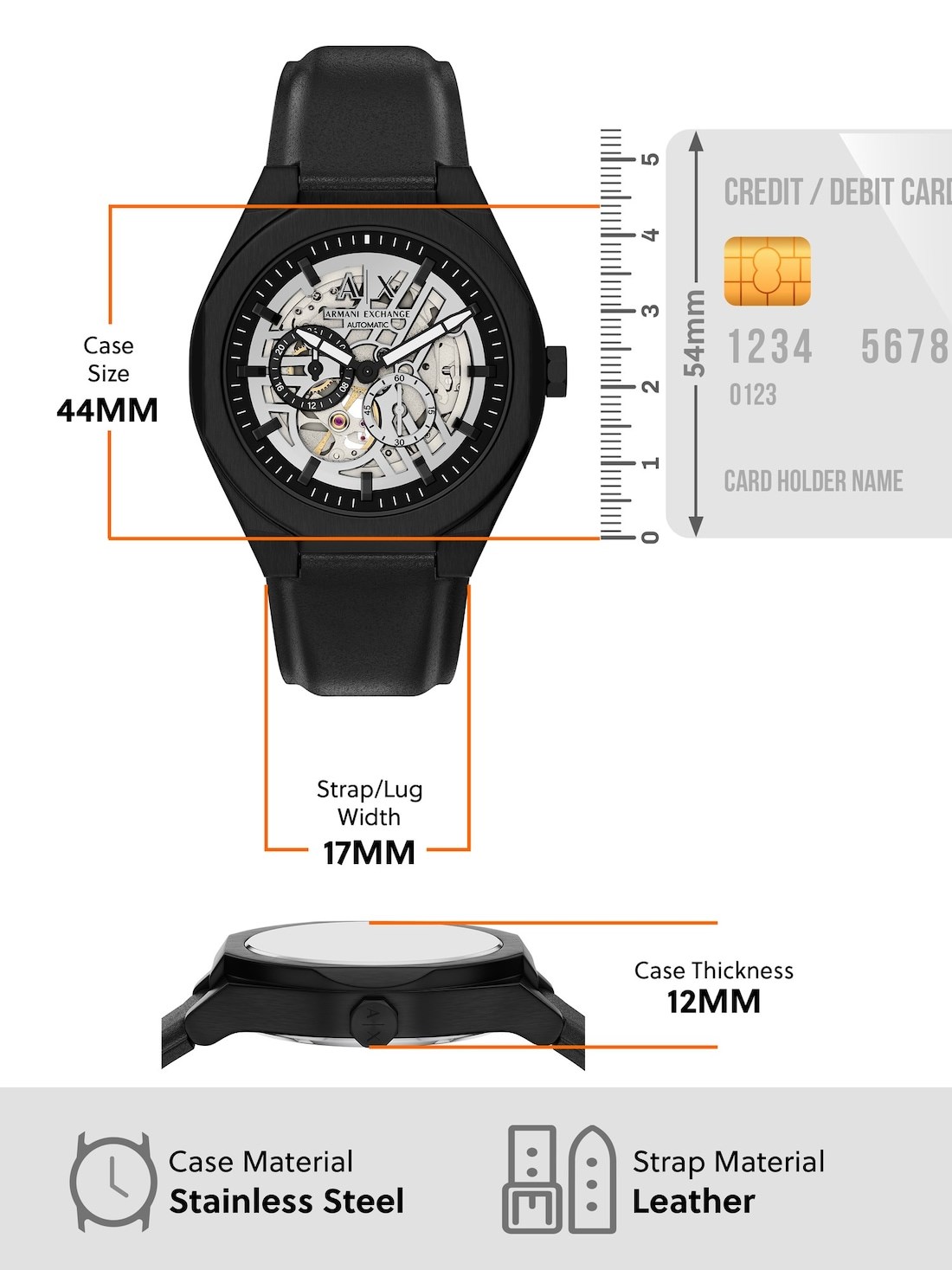 Watch Features armani exchange, armani exchange watch for men, men's armani exchange watch, leather watches for men, black watches for men, japan, japanese movement