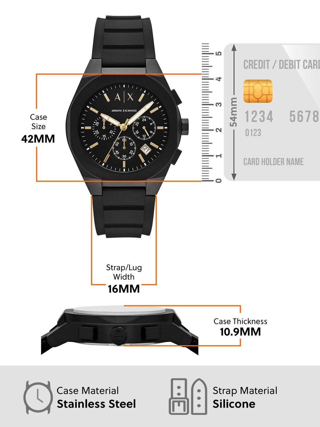 Watch Features armani exchange, armani exchange watch for men, men's armani exchange watch, silicone watches for men, black watches for men, black, watches for men, japan, japanese movement, Father's Day Gift