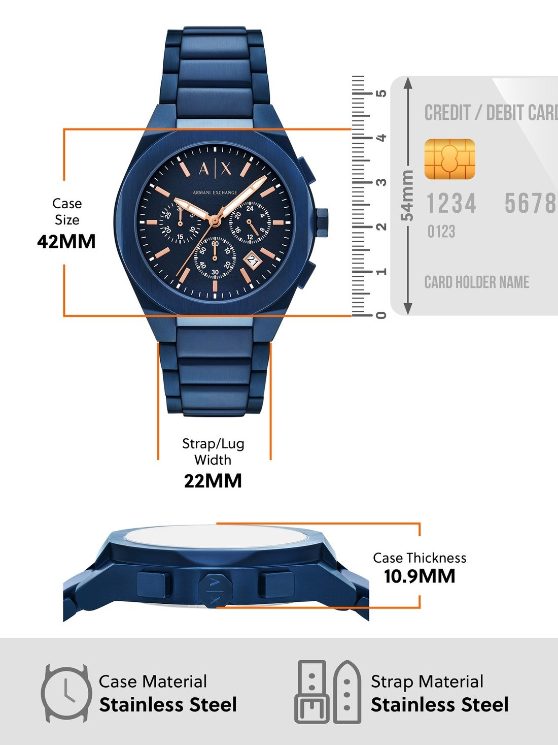 Watch Features armani exchange, armani exchange watch strap for men, men's armani exchange watch strap, stainless steel watch straps for men, blue watch straps for men, blue, watch straps for men, japan, japanese movement