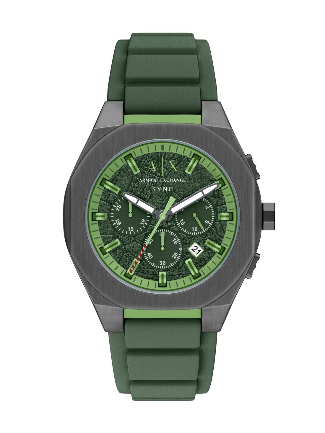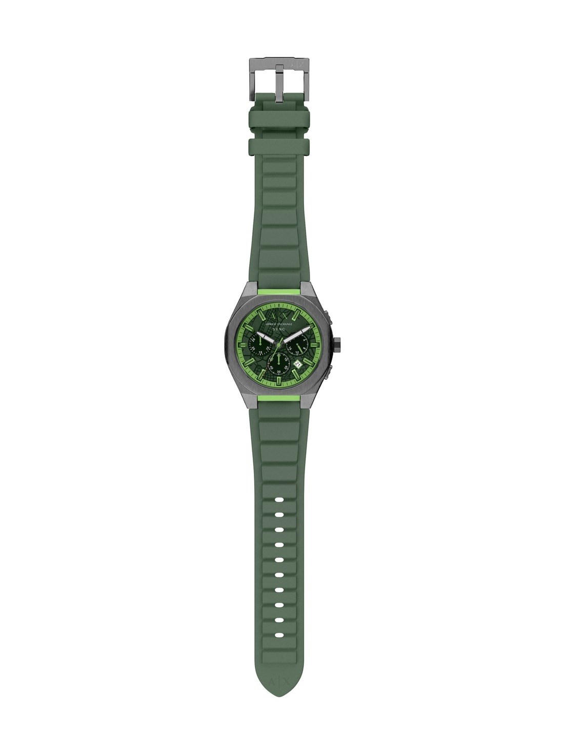 Watch Features armani exchange, armani exchange watch for men, men's armani exchange watch, silicone watches for men, green watches for men, japan, japanese movement, green, green dial, green watch