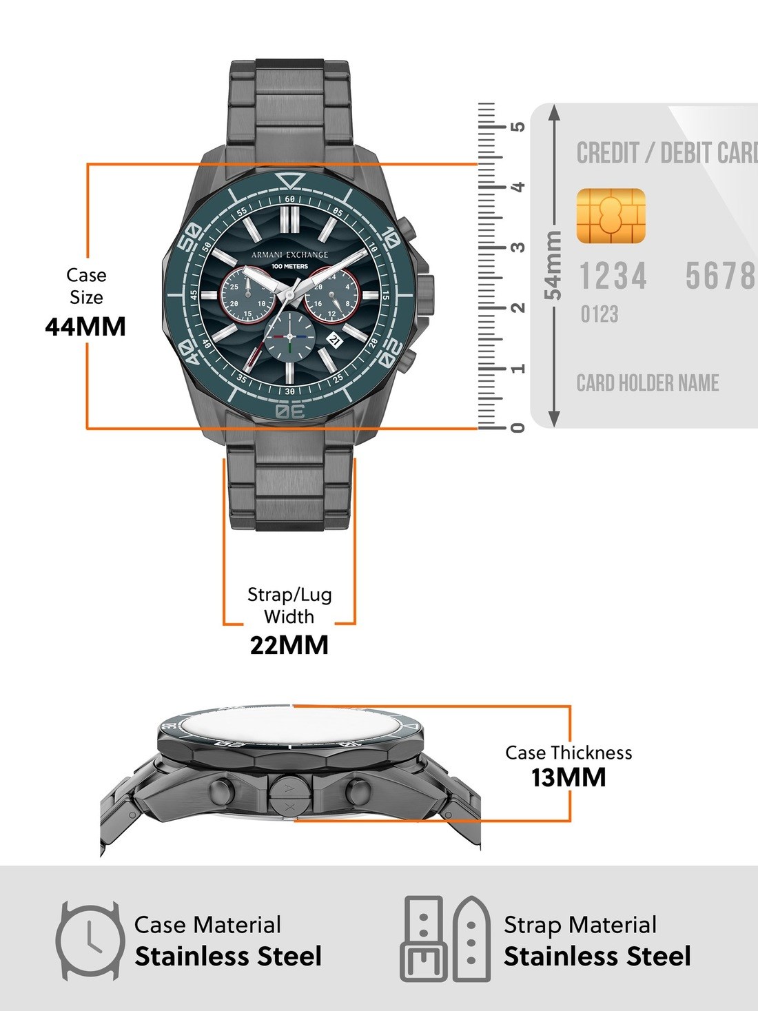 Watch Features armani exchange, armani exchange watch for men, men's armani exchange watch, stainless steel watches for men, gunmetal watches for men, japan, japanese movement