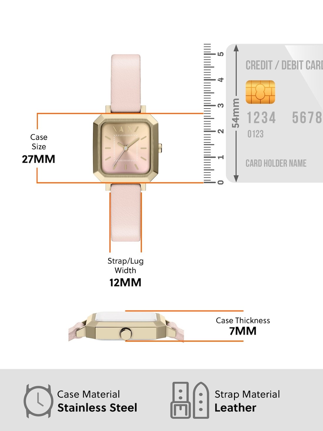 Watch Features armani exchange, armani exchange watch for women, women's armani exchange watch, leather watches for women, pink watches for women, japan, japanese movement, pink, pink strap, pink watch