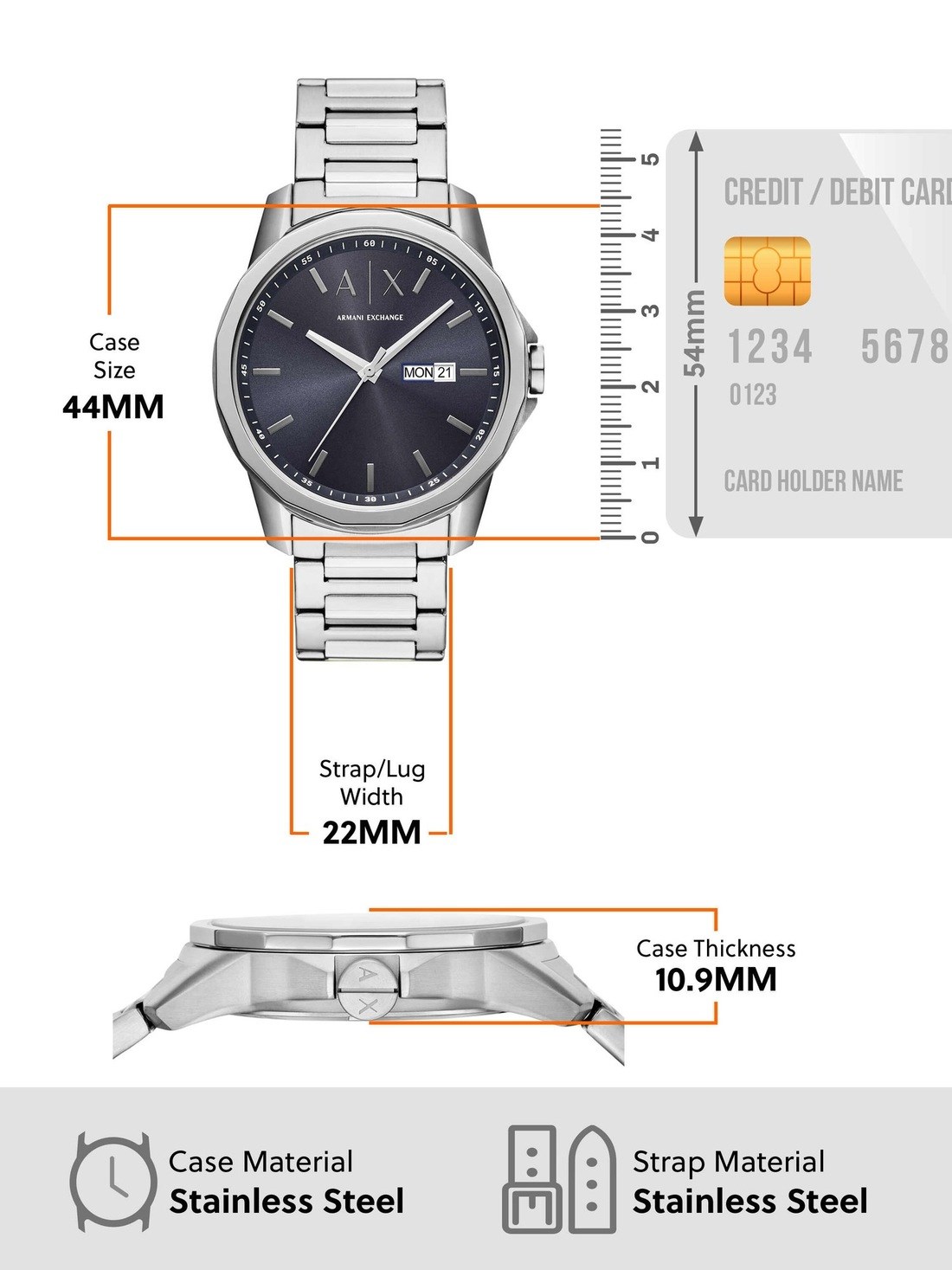 Watch Features armani exchange, armani exchange watch for men, men's armani exchange watch, stainless steel watches for men, silver-tone watches for men, silver-tone, watches for men, japan, japanese movement