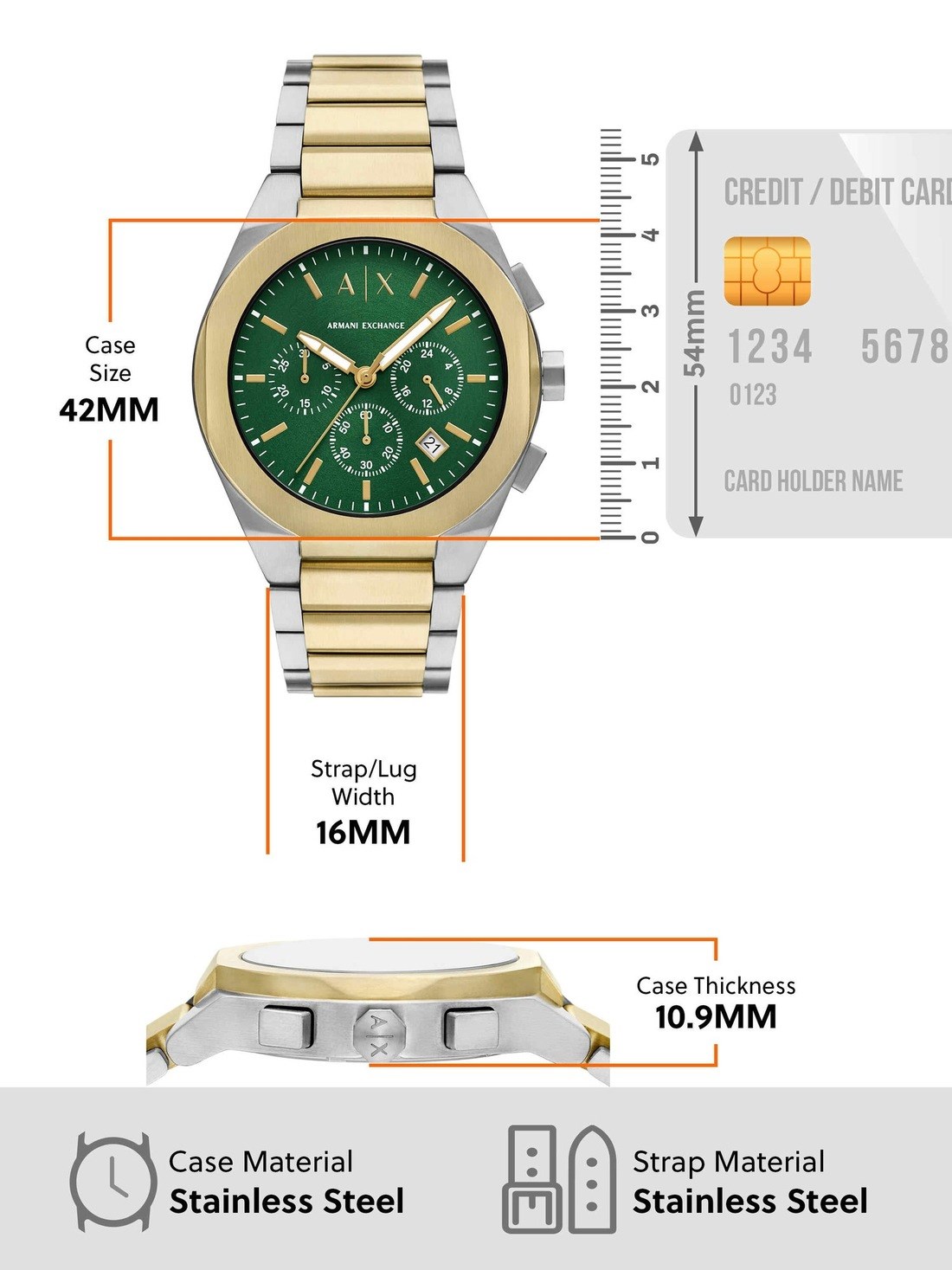 Watch Features armani exchange, armani exchange watch for men, men's armani exchange watch, stainless steel watches for men, two-tone watches for men, two-tone, watches for men, japan, japanese movement