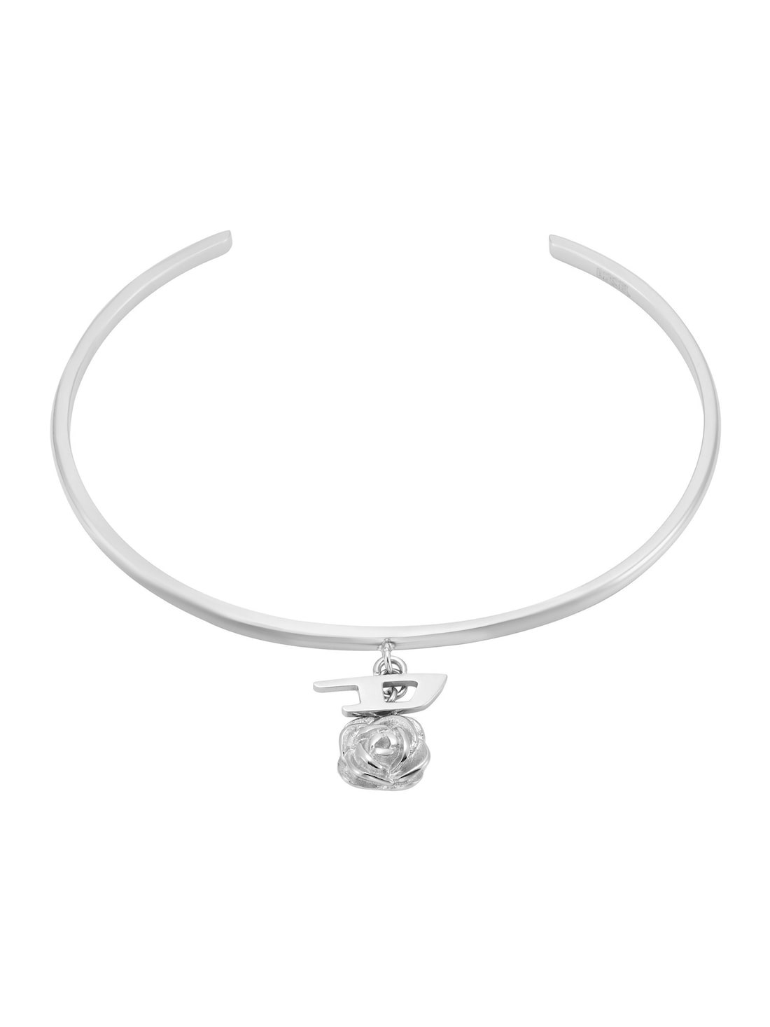 Short Description Diesel's silver charm cuff bracelet features stainless steel, a rose motif charm and a D logo charm.