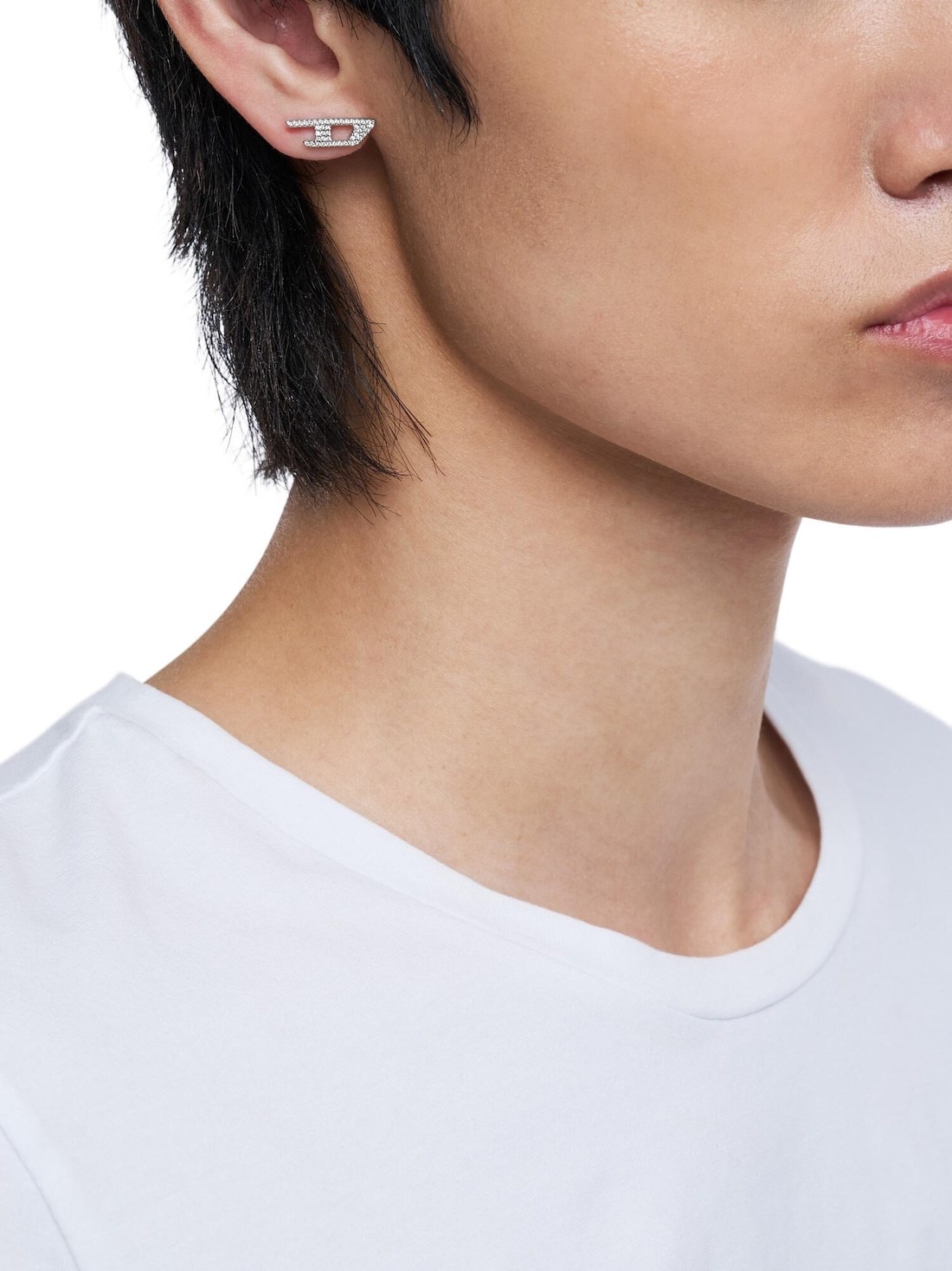 Short Description Diesel's silver-tone single stud earring features stainless steel and the iconic D logo with glitz.