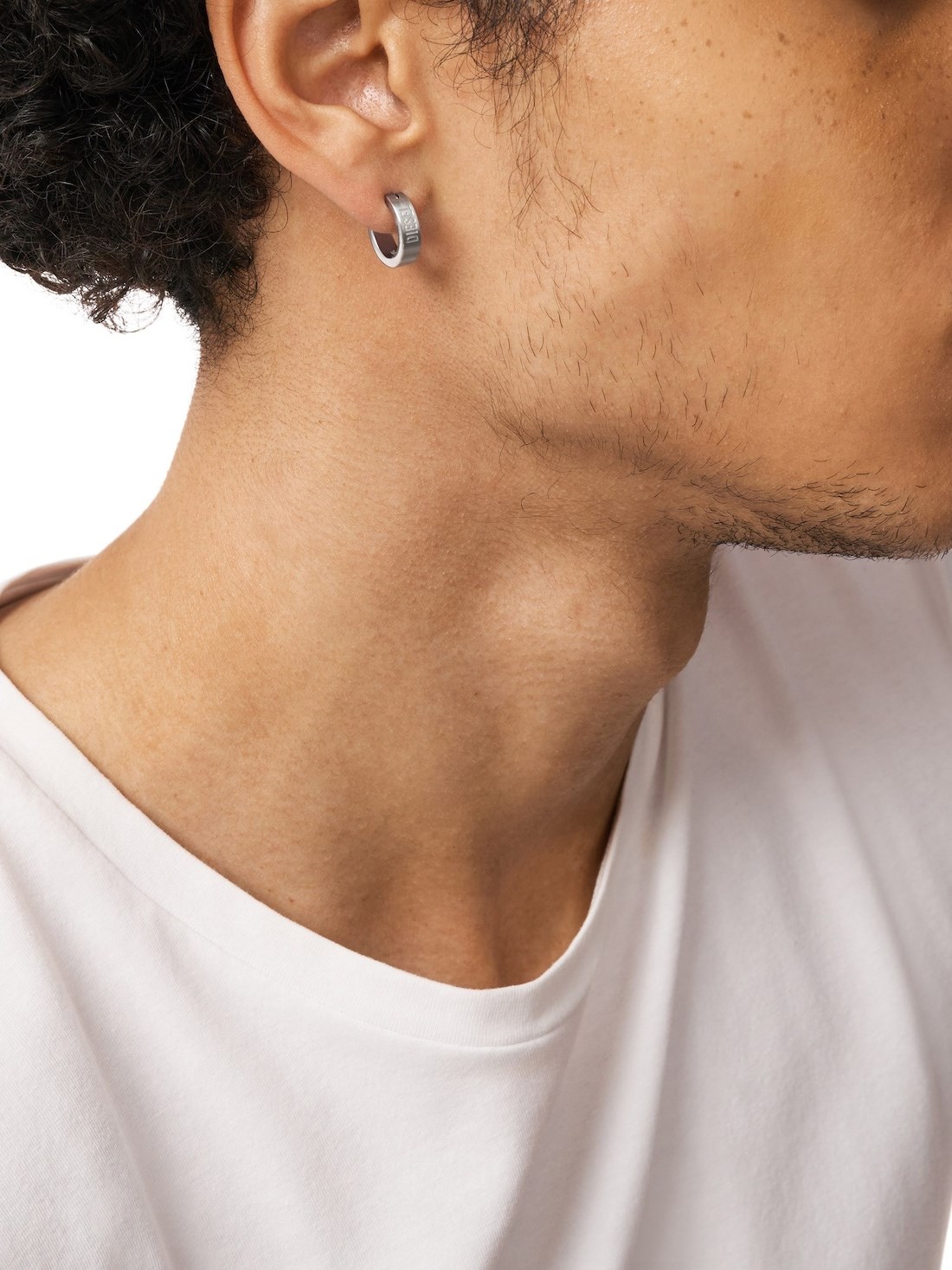 Short Description Diesel's silver-tone hoop earring features stainless steel and the Diesel biscotto logo, finished with an earwire closure.
