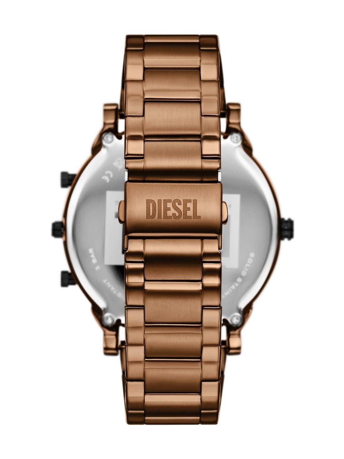 Short Description Diesel's 54mm Mr. Daddy Slim watch features a brown sunray dial, multiple time setting movements, and a brown stainless steel bracelet.