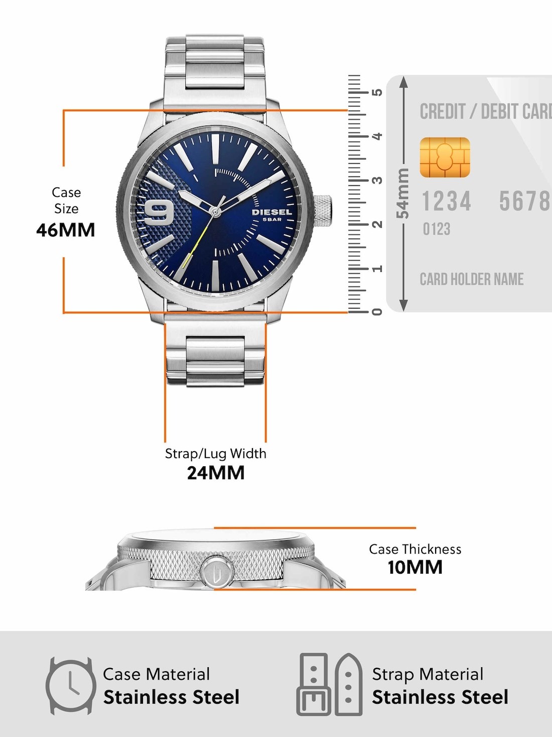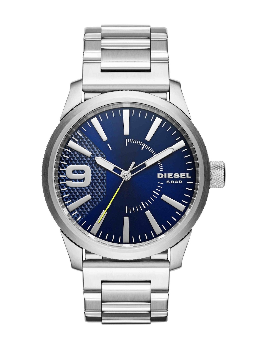 Short Description Wear the ultimate expression of Diesel style and design evolution on your wrist with the Rasp watch. A machine-knurled stainless-steel case and multi-link bracelet let the rich, multi-layered asymmetric blue dial shine. This timepiece is perfect for corporate attire and would work perfectly with a well-tailored suit and a precisely styled quiff.