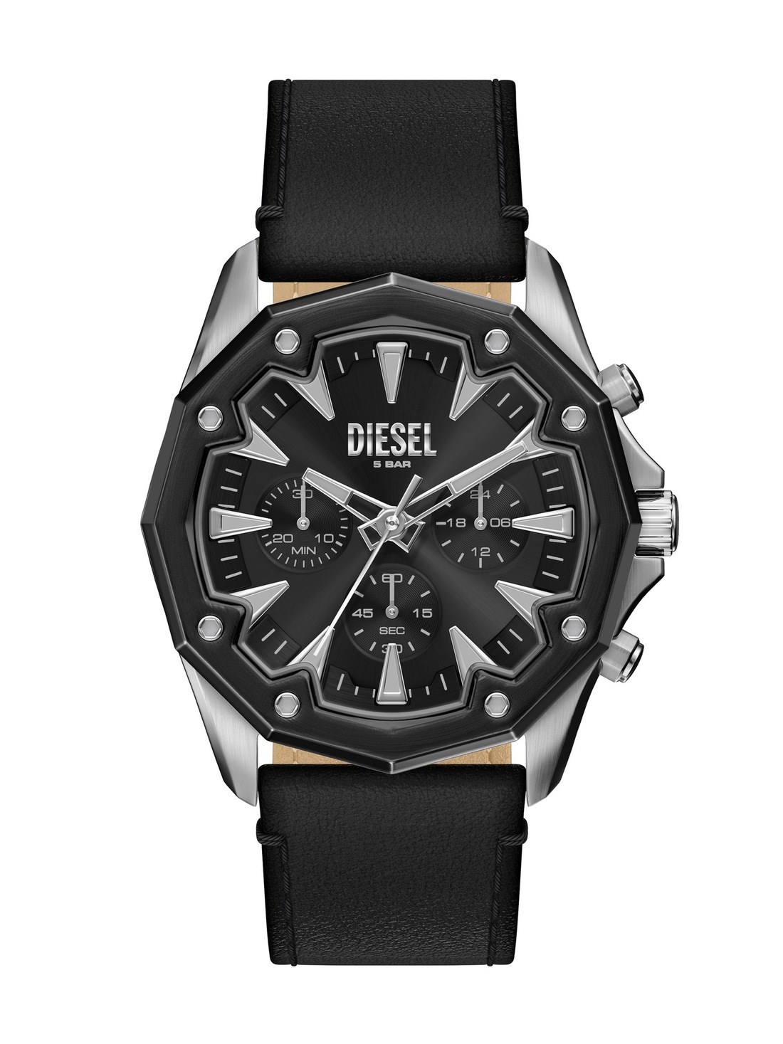 Watch Features dz, diesel, diesel watches for men, men's diesel watches, leather watches for men, watches for men, black watches for men, stinger, quartz chrono, japan, japanese movement