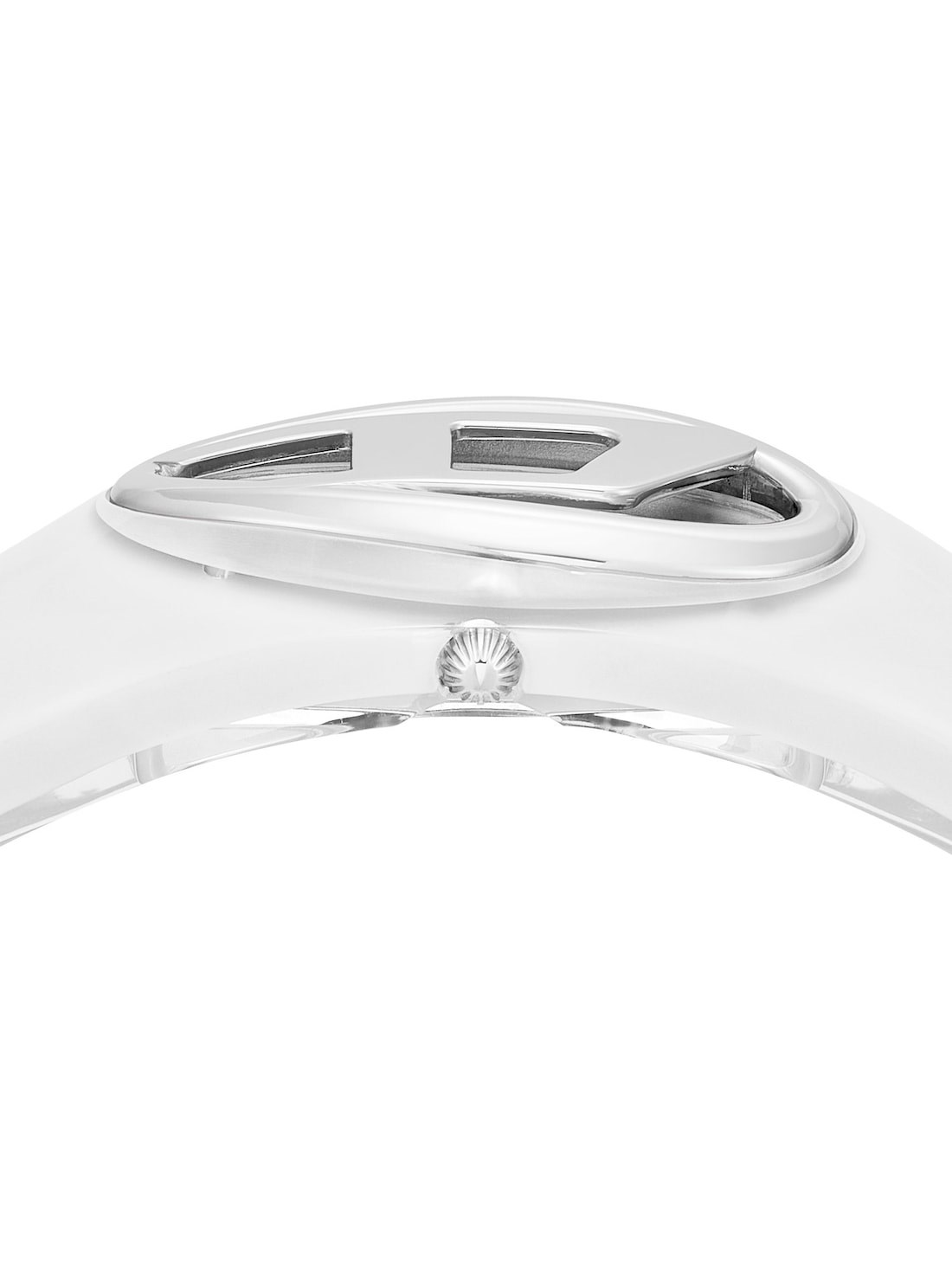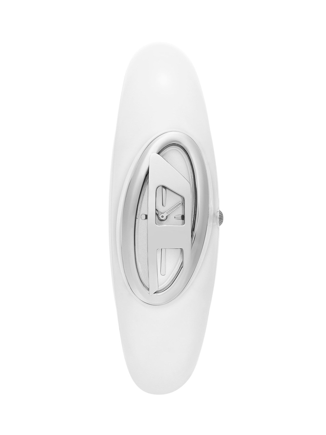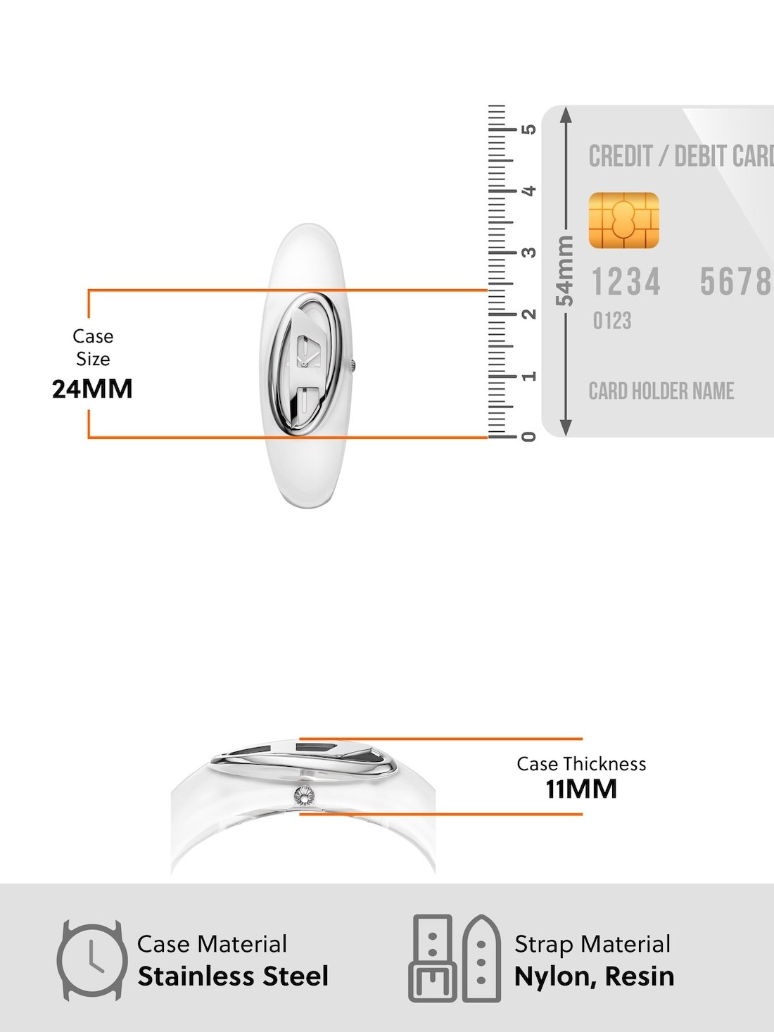 Short Description Diesel's 24mm Wonder-D watch features an oval case, white sunray dial, two-hand movement, and a white nylon resin cuff.