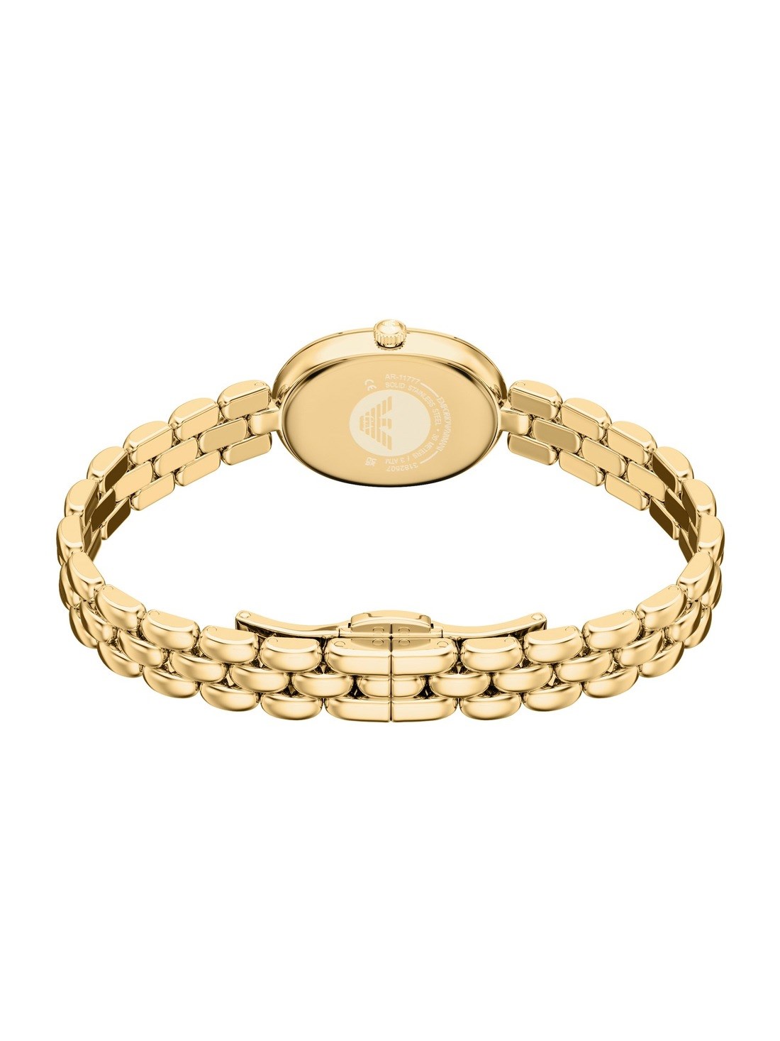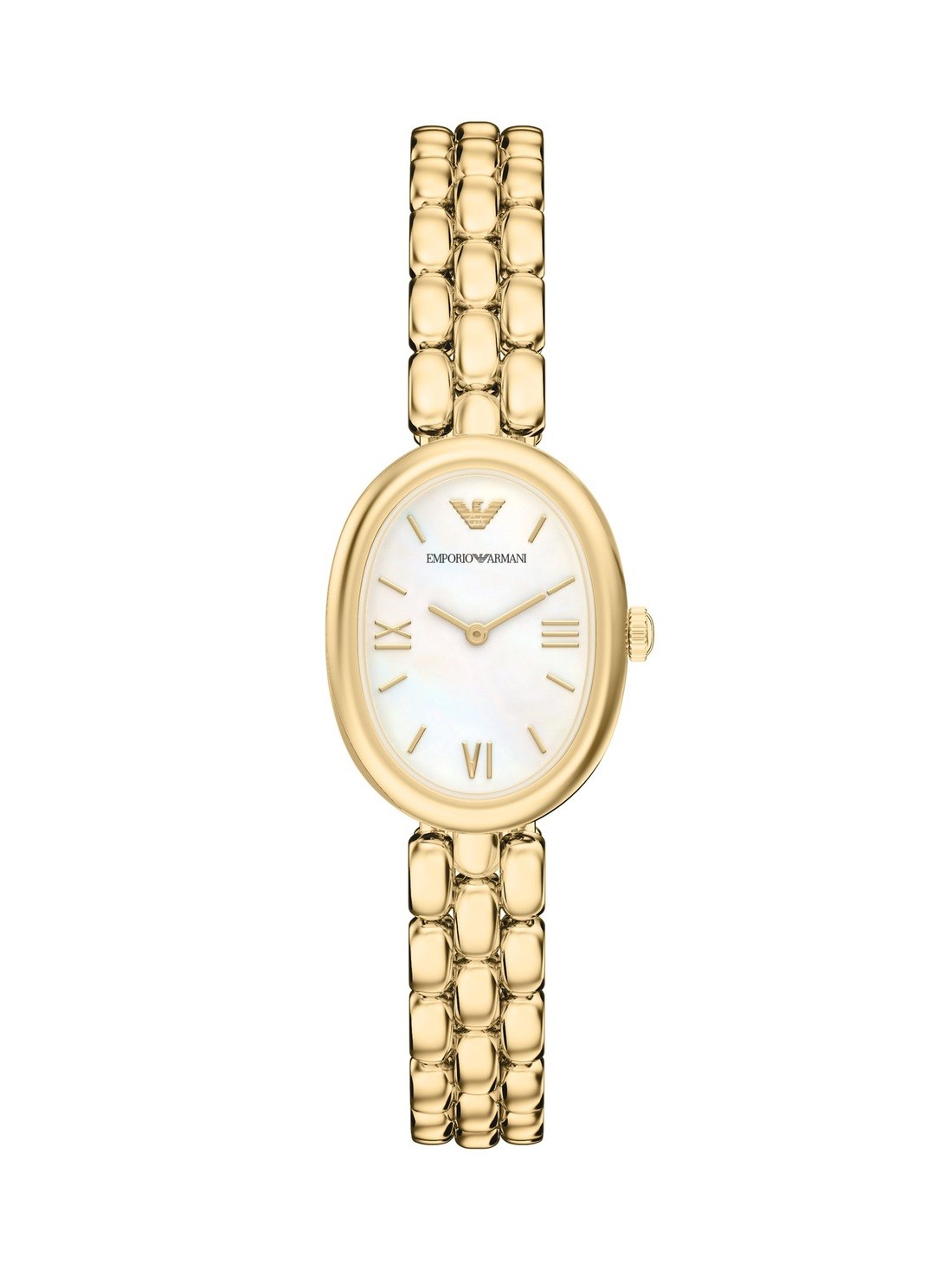Watch Features emporio armani, emporio armani watch for women, women's emporio armani watch, stainless steel watches for women, gold watches for women, gold-tone watches for women, japan, japanese movement, oval, oval face, oval watch