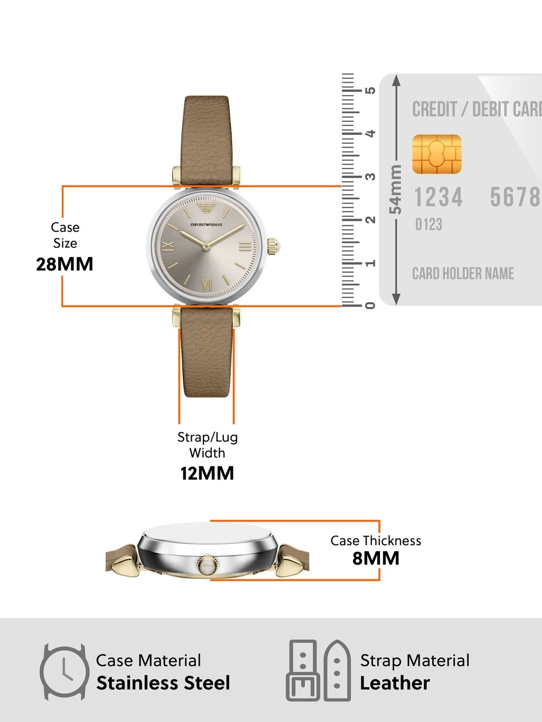 Watch Features emporio armani, emporio armani watch for women, women's emporio armani watch, leather watches for women, taupe watches for women, japan, japanese movement