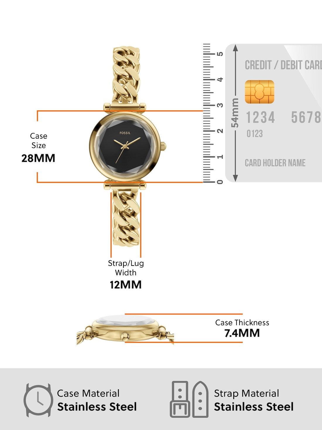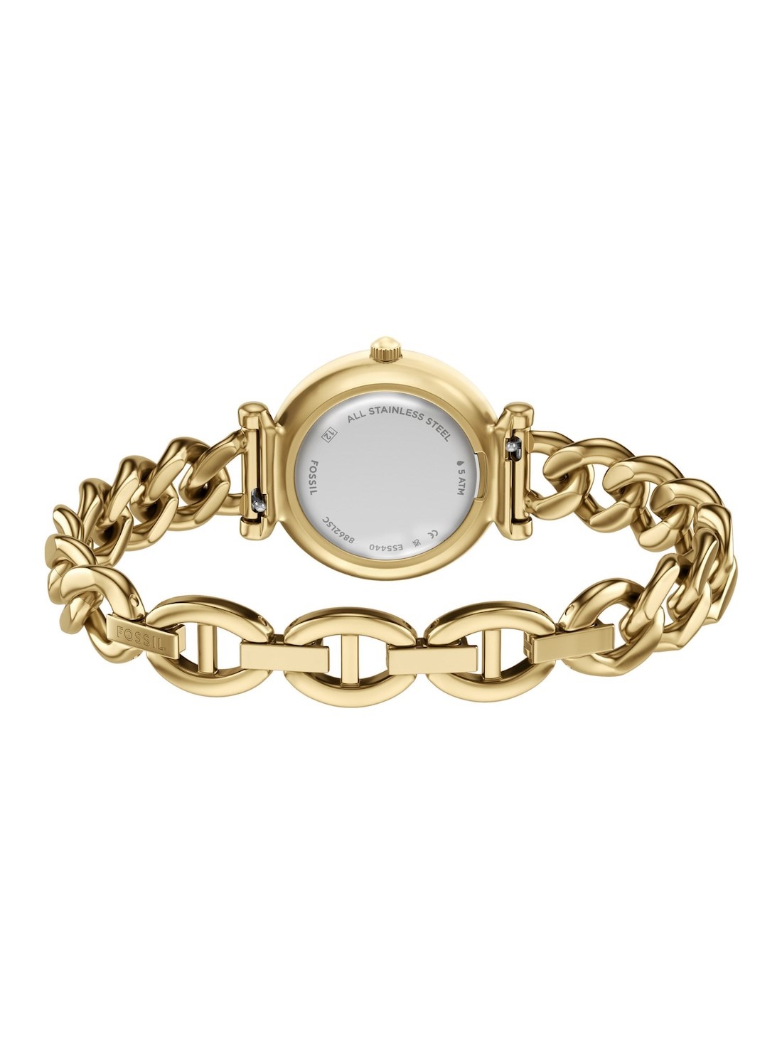 Watch Features fossil,fossil watches for women,women's fossil watches,stainless steel watches for women,gold watches for women,gold-tone watches for women,quartz three hand watches for women,carlie, engraving, japan, japanese movement