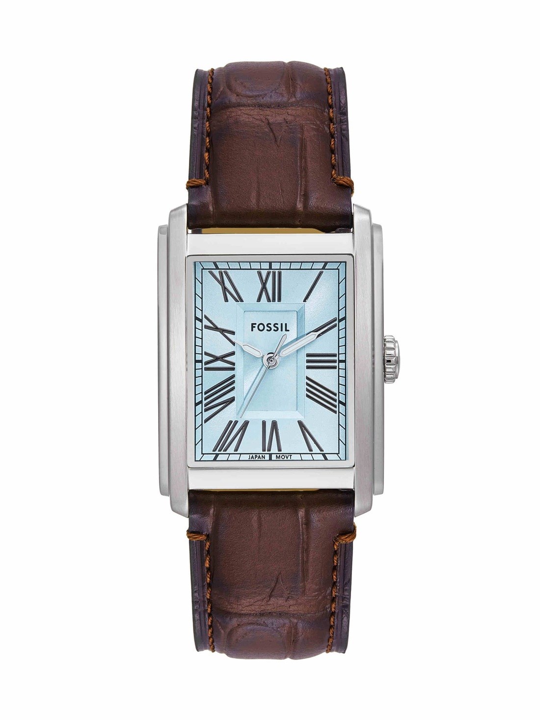 Watch Features fossil, fossil watches for men, men's fossil watches, leather watches for men, quartz three-hand watches for men, brown croco watches for men, carraway, japan, japan movement, litehide