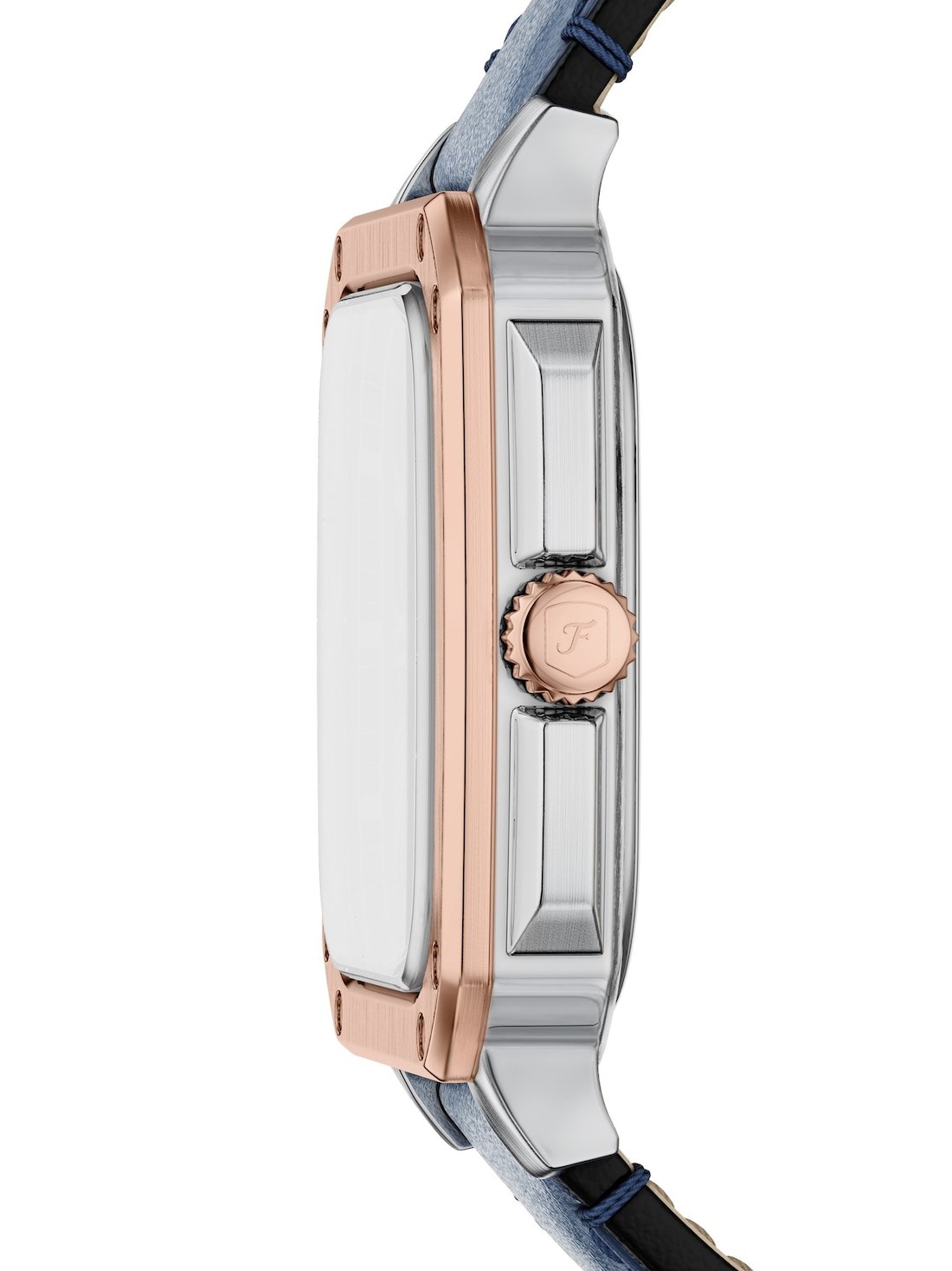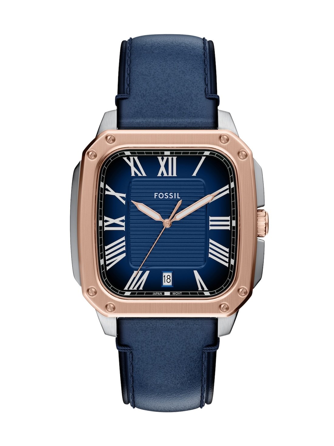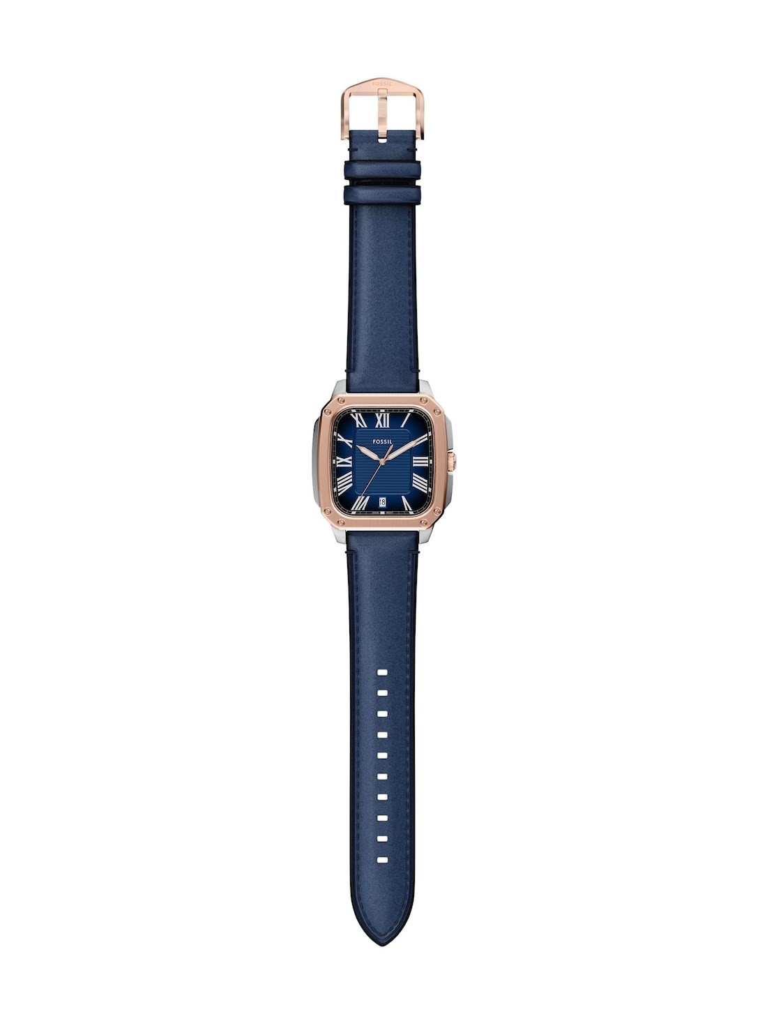 Short Description A modern classic with timeless appeal, the Crosby watch balances form and function. Its rectangular rose gold-tone stainless steel case houses a navy sunray dial with a date window to keep you on schedule. The navy leather strap complements the classic design with a prong buckle for easy adjustability. Versatile yet distinctive, this classic timepiece belongs in your watch rotation.