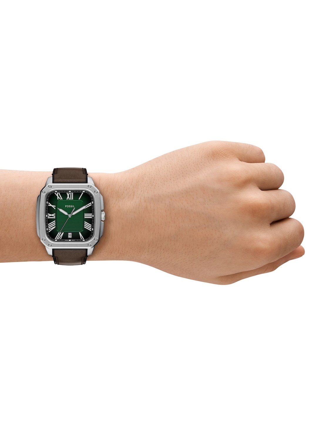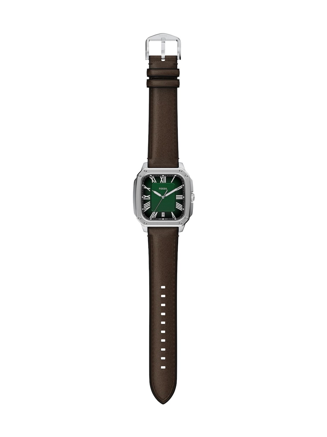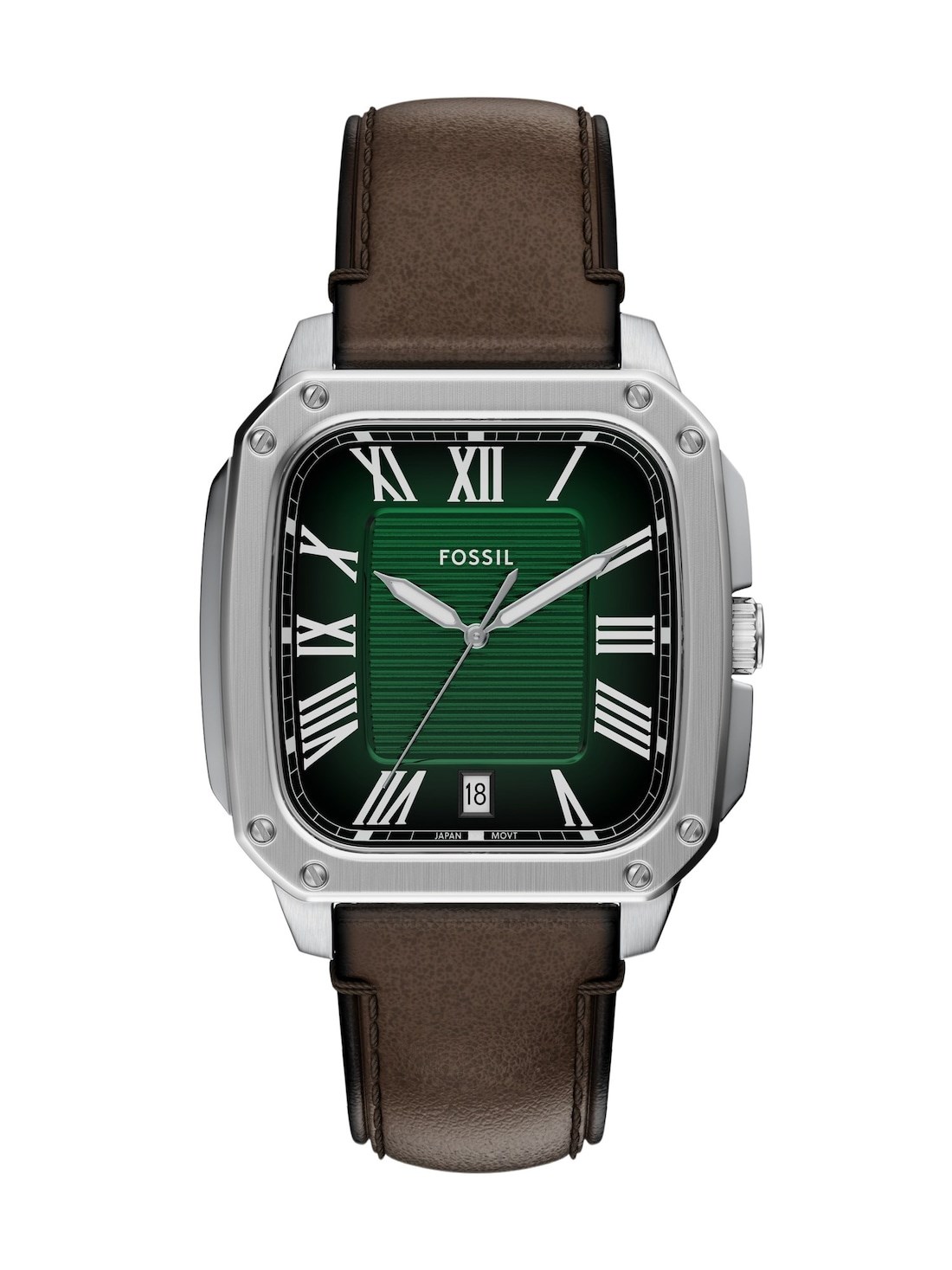 Short Description A modern classic with timeless appeal, the Crosby watch balances form and function. Its rectangular stainless steel case houses a green sunray dial with a date window to keep you on schedule. The brown leather strap complements the classic design with a prong buckle for easy adjustability. Versatile yet distinctive, this classic timepiece belongs in your watch rotation.