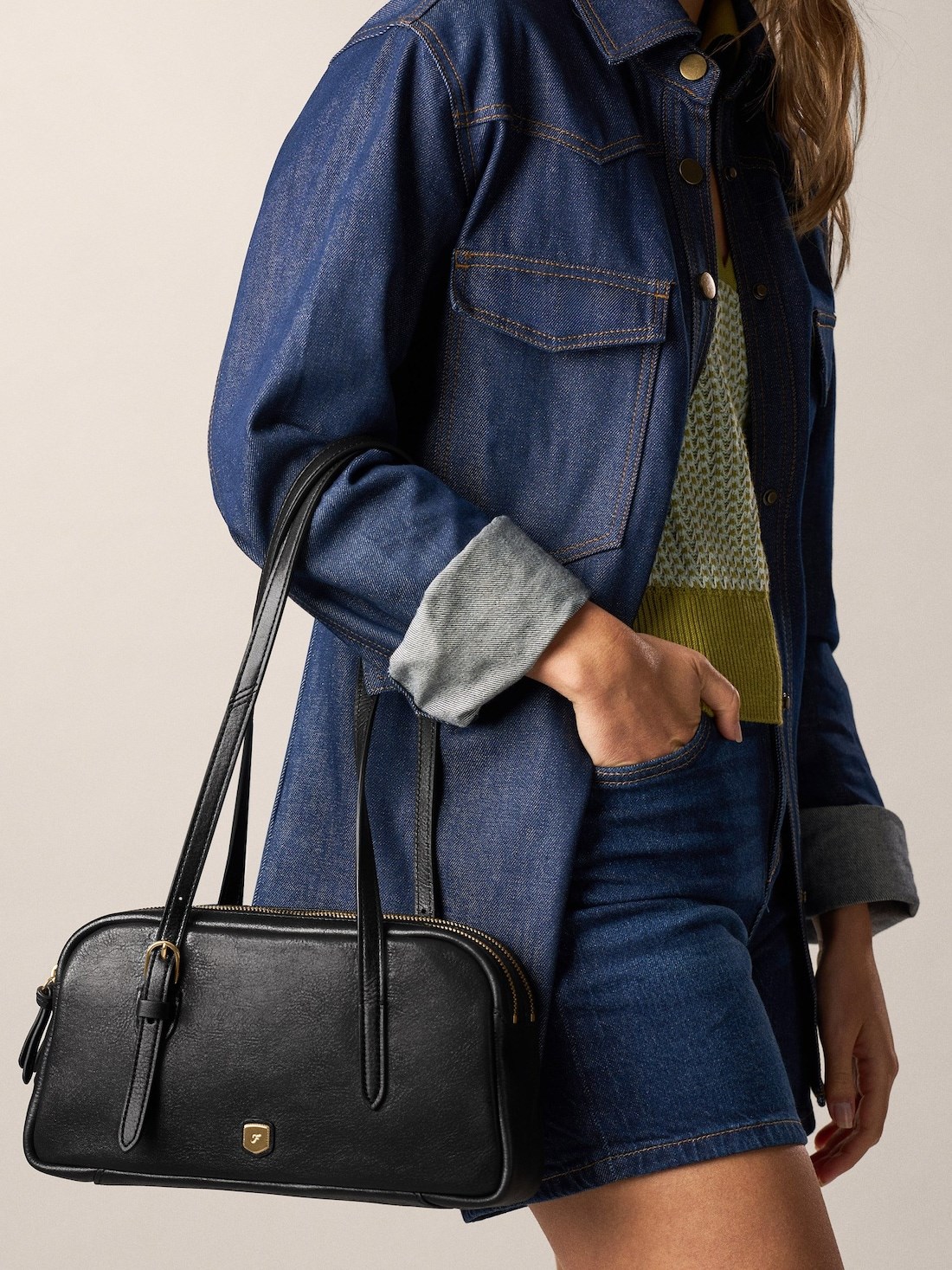 Premium craftsmanship: genuine leather shoulder bag with zipper closure; 100% cotton lining; imported