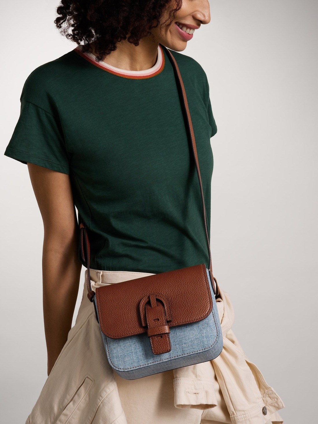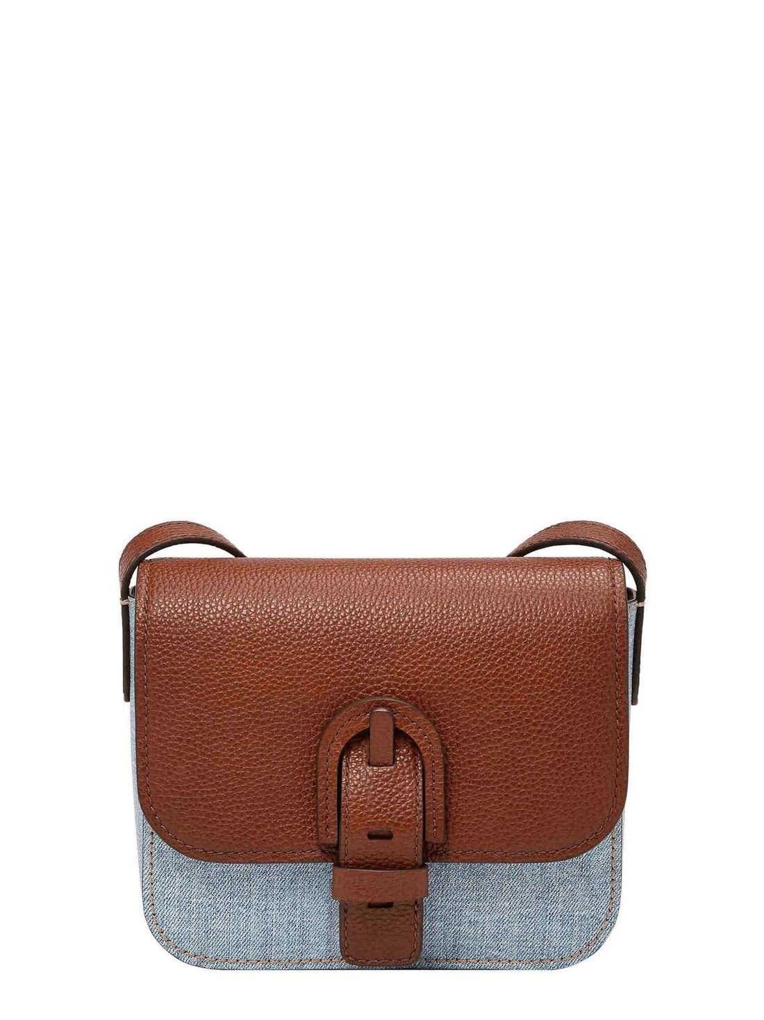 Short Description The Delanie Crossbody is our new spring essential—a fresh blue denim take on a wear-everywhere silhouette. Crafted from durable coated fabric with rich leather trim, it perfectly balances style and function. A roomy interior with organizational pockets keeps everything in order, while gold-tone hardware and an adjustable strap lend signature Fossil polish. Wear it crossbody or over the shoulder—this versatile piece pairs effortlessly with everything.