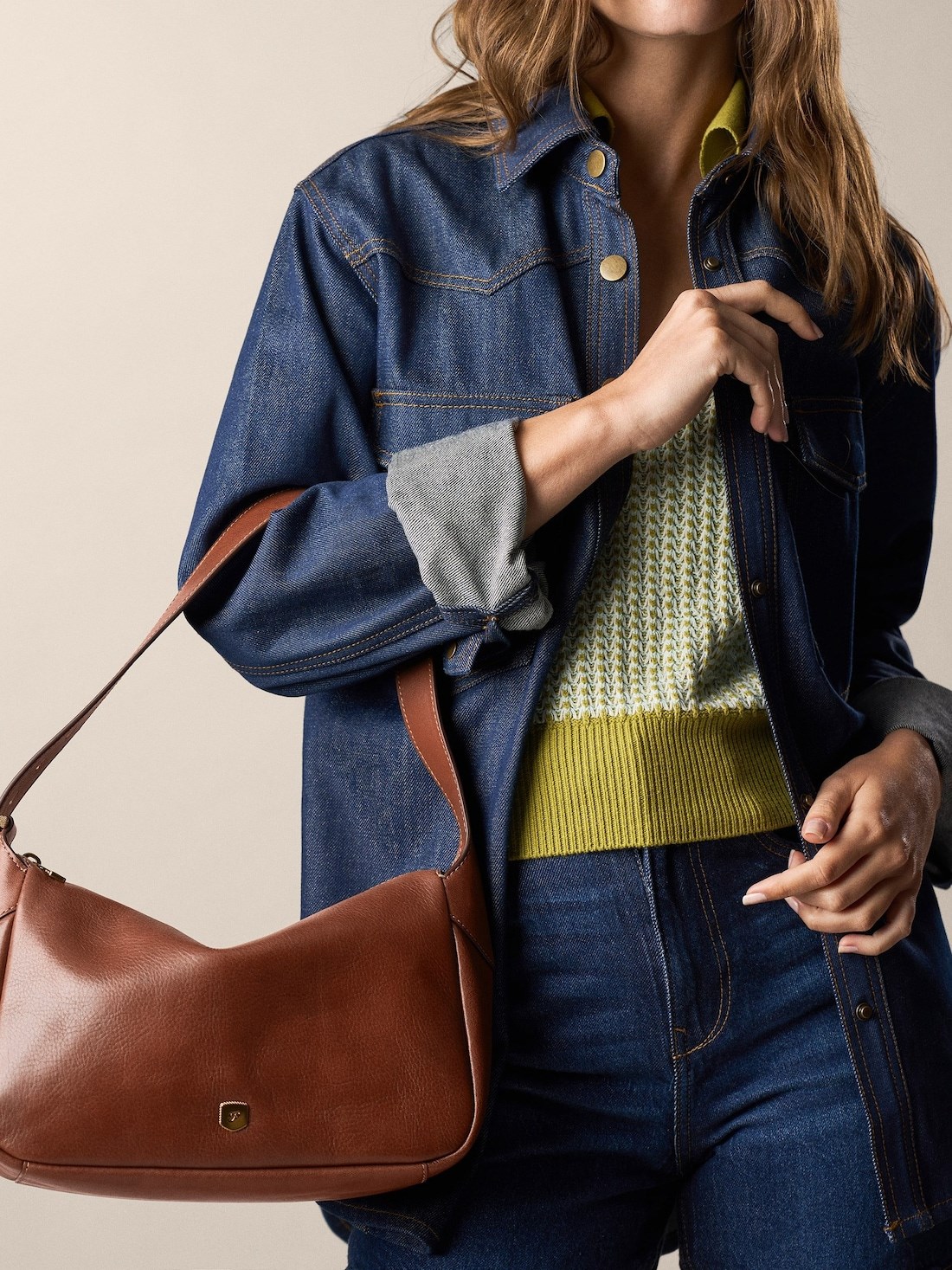 Short Description Made from full grain leather, this shoulder bag balances daily use with a refined finish. The spacious interior is designed to hold your daily essentials with ease. An adjustable leather shoulder strap ensures comfortable wear, and metallic accents add a polished touch. Clean lines and quality materials come together in a design that’s both functional and understated.