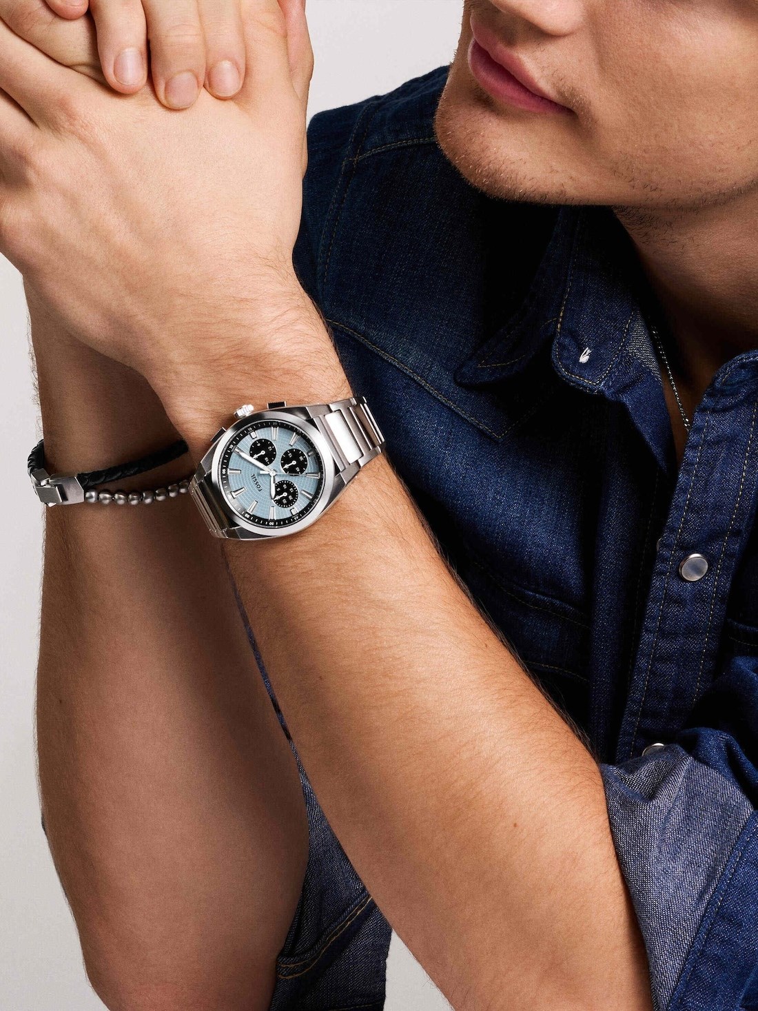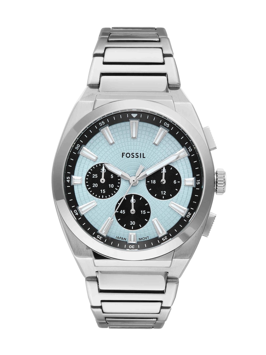 Short Description Exuding effortless style, the Everett Chronograph. This sporty stainless watch balances casual cool with refined sophistication. The sunray sky blue dial, encased in a 44mm round stainless steel case, lends a touch of modern inspiration. Functional details like Japanese chronograph quartz movement and a solid steel bracelet ensure this versatile timepiece keeps you on schedule. Slip on this iconic accessory and take on whatever comes your way.