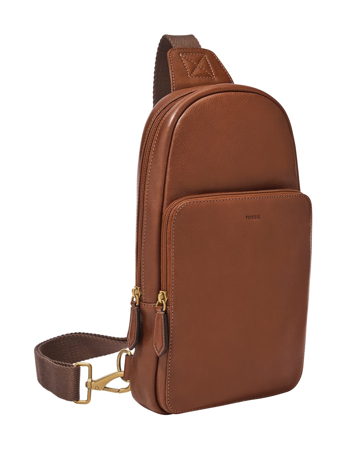 Short Description Crafted from full grain leather, this sling pack combines tactile appeal with functional design. The silhouette includes a main zippered compartment with a mesh interior slide pocket. A zippered exterior front pocket provides easy access to your everyday essentials and a slide back exterior pocket can hold your cell phone. An adjustable strap allows for a personalized fit, and the Estate brass finished hardware adds a polished finish.
