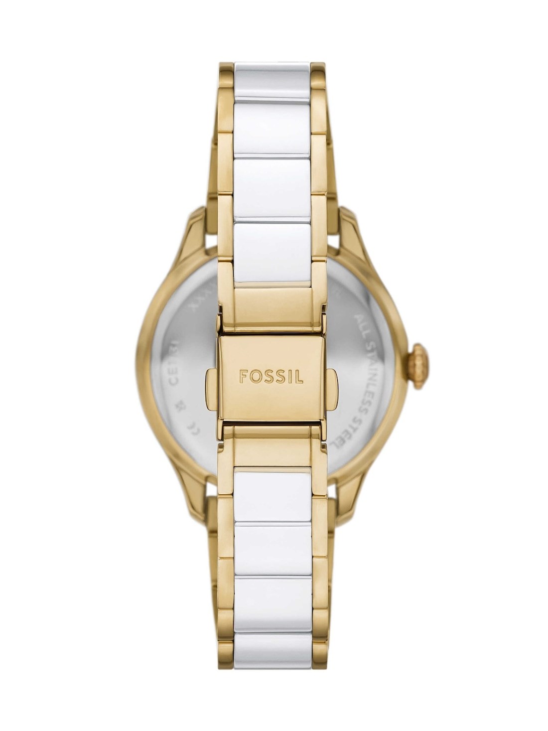 Watch Features fossil, fossil watches for women, women's fossil watches, ceramic watches for women, gold-tone watches for women, watches for women, quartz three hand date for women, gilmore, japan, japanese movement