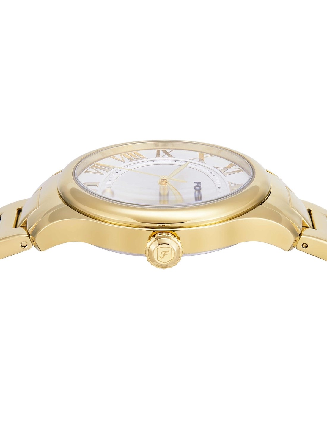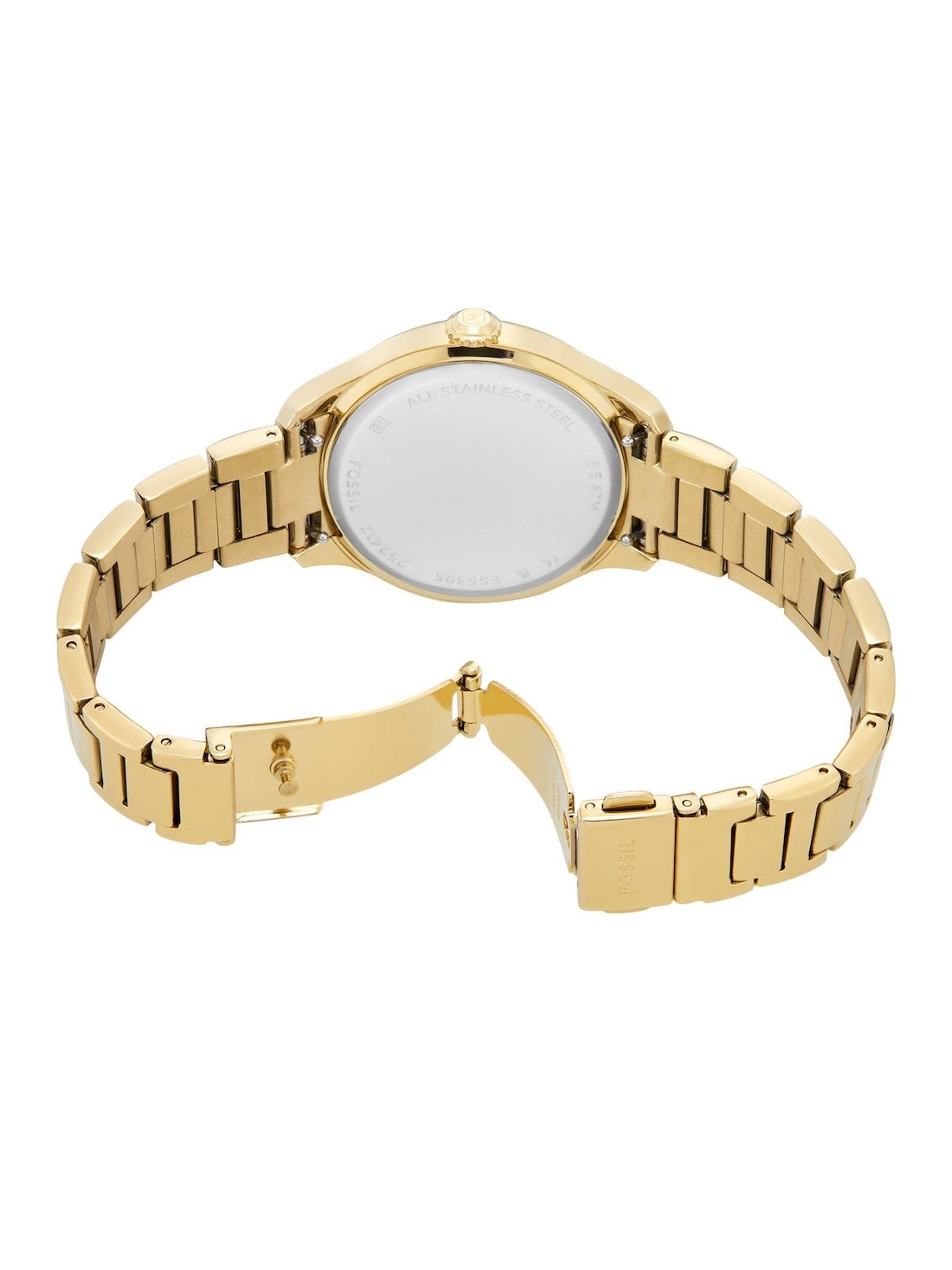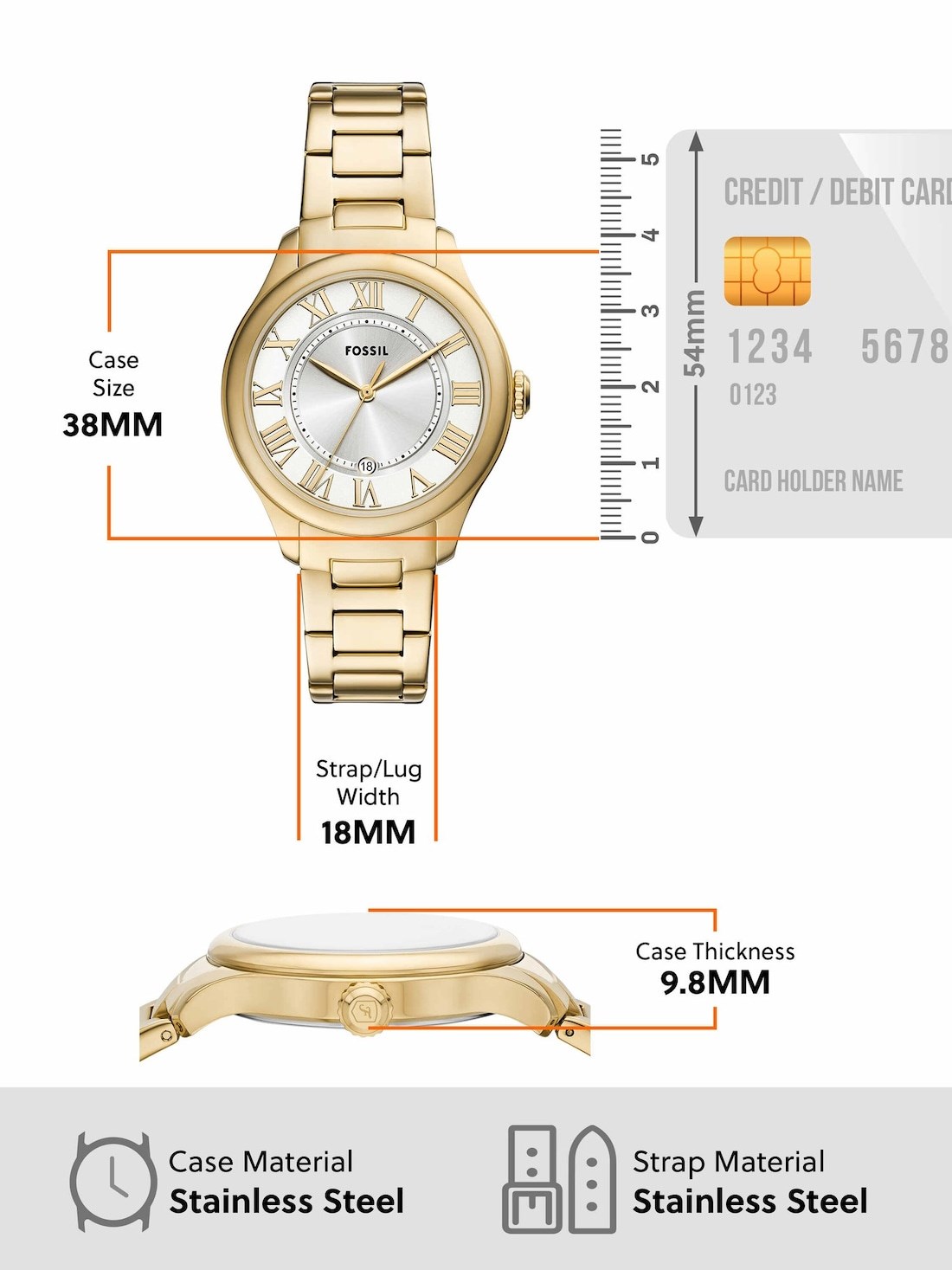 Watch Features fossil, fossil watches for women, women's fossil watches, stainless steel watches for women, quartz three-hand date watches for women, gold watches for women, gilmore, japan, japan movement