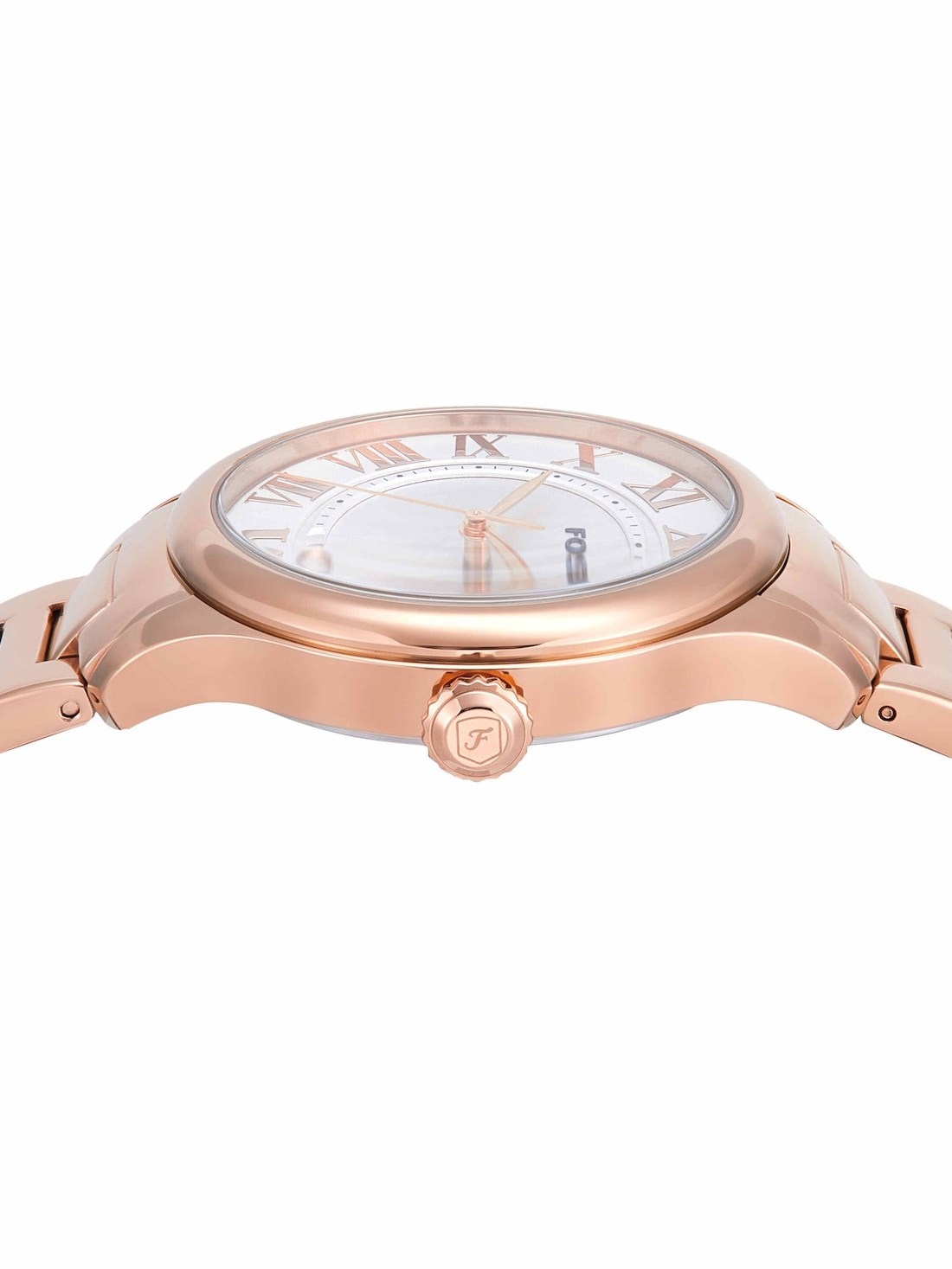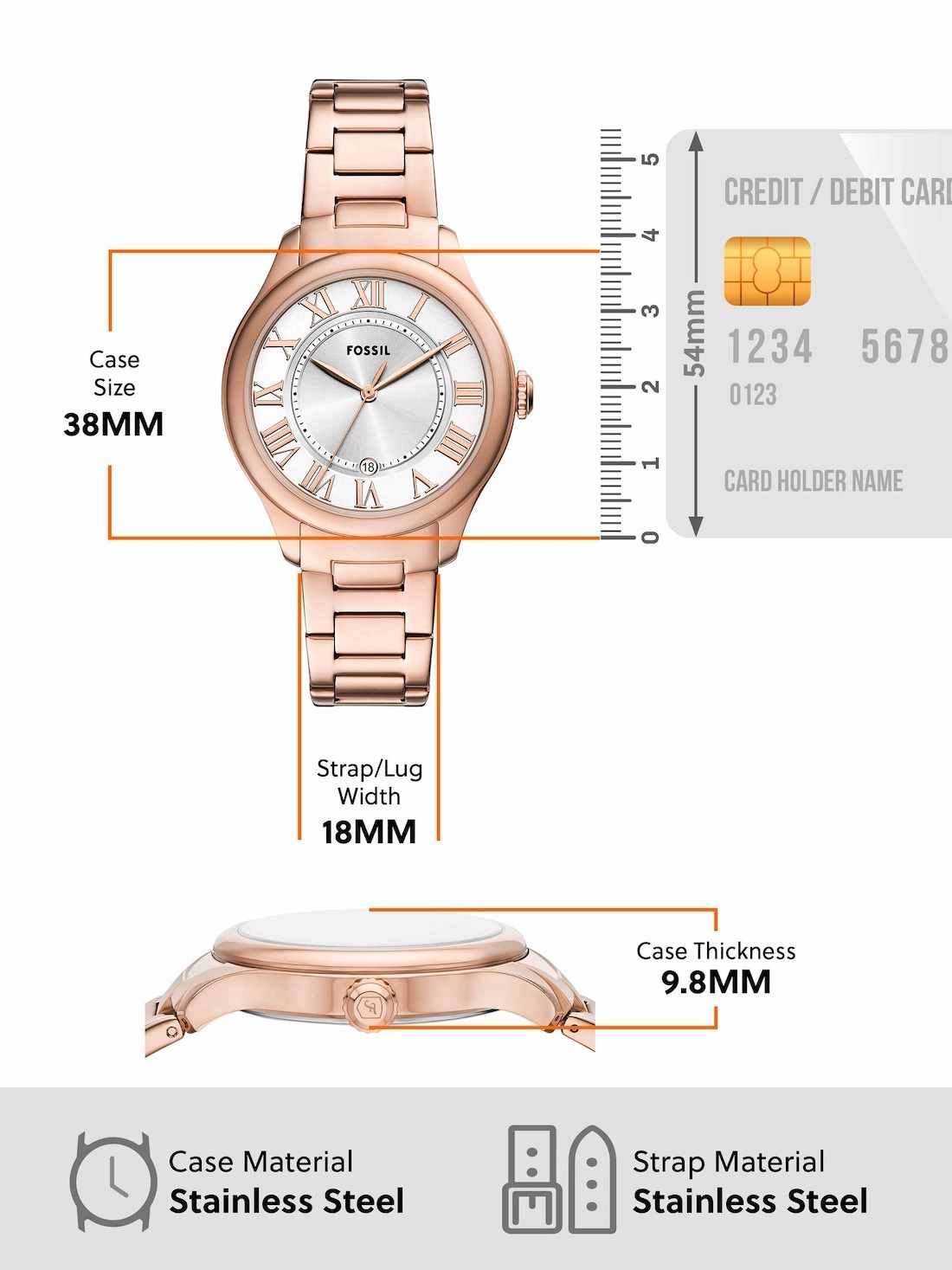 Short Description The Gilmore watch combines vintage-inspired design with modern versatility. Its slim rose gold-tone case features a light-reflecting silver sunray dial paired with a sleek H-link bracelet. A three-hand date movement lends timeless functionality, keeping you on schedule. Wear this classic companion from morning meetings to an evening out.