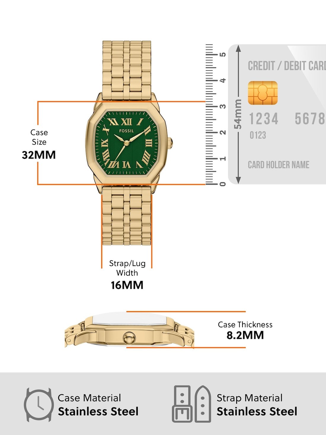 Watch Features fossil,fossil watches for women,women's fossil watches,stainless steel watches for women,gold watches for women,gold-tone watches for women,quartz three hand watches for women,harlow, engraving, japan, japanese movement