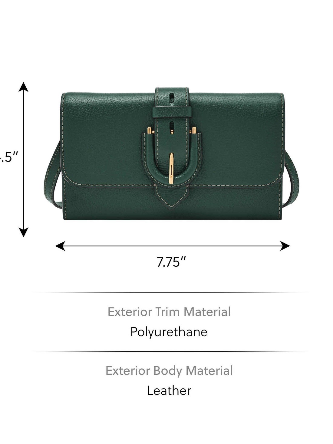 Short Description Elevate your everyday carry with the Harwell Leather Wallet Crossbody Bag in a striking viridian hue. Crafted from rich leather with a gold-tone finish, this compact crossbody packs plenty of style and function. A flap with snap closure featuring the iconic leather wrapped Harwell buckle reveals an interior of fabric lining with six credit card slots and a zipper pocket to secure essentials. The detachable strap allows you to switch up the styling. It's a perfect plus one for your phone, cards, and must-haves. Fossil leather products support responsible manufacturing via the Leather Working Group.