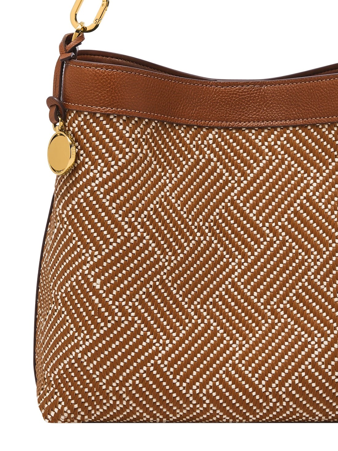 Short Description Jessie gets a Spring refresh with an easy texture and pattern that compliments its relaxed silhouette. The spacious interior is designed for daily essentials, with a secure zippered pocket for added organization. Knurled metal studs accent the adjustable strap, adding subtle texture and detail.