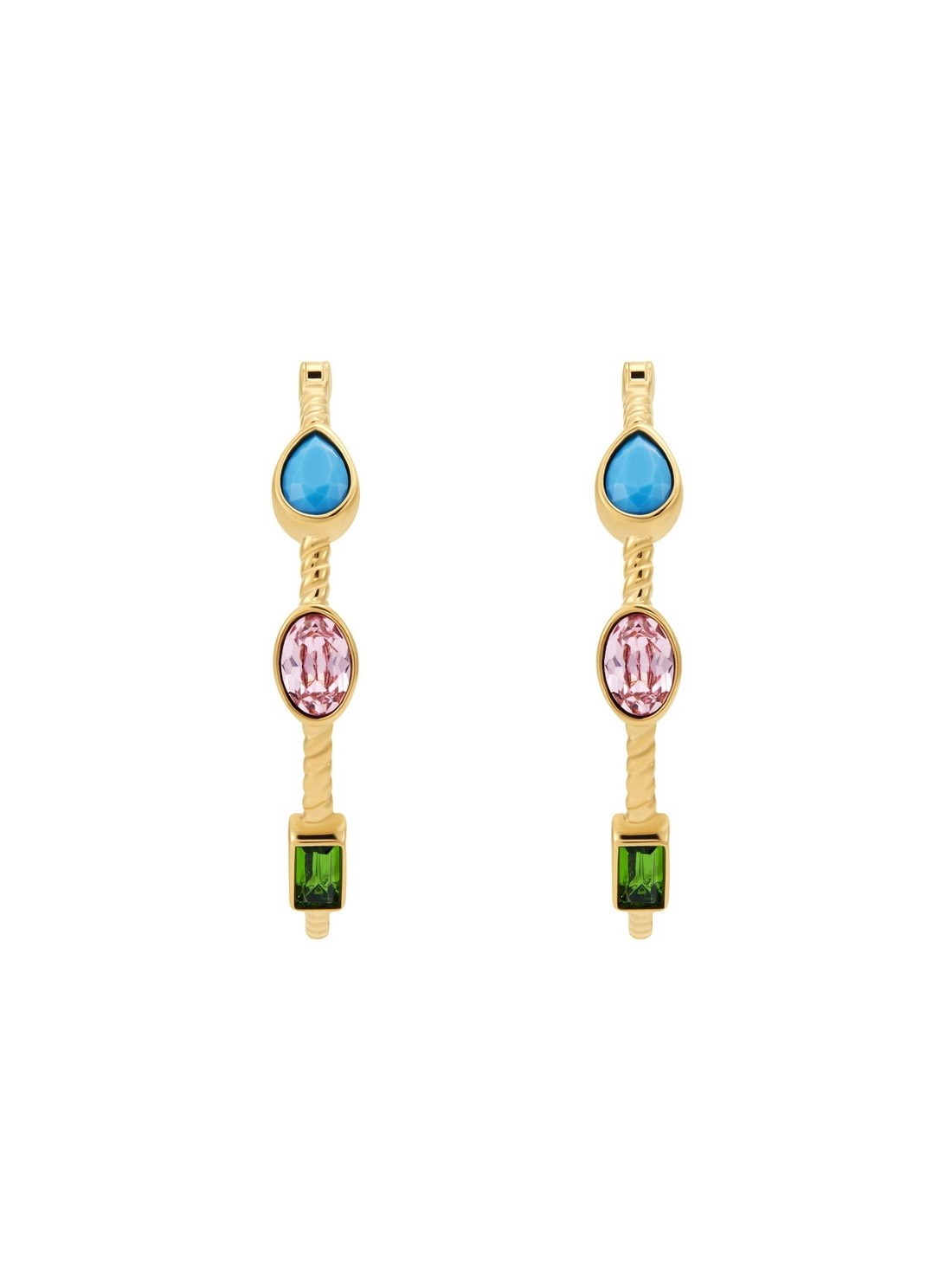 Short Description Crafted in polished gold-tone stainless steel, these earrings showcase a refined rope texture on a modern silhouette. Part of The Good Luck Collection, these bold hoops feature crystals in various colors and shapes for a statement look.