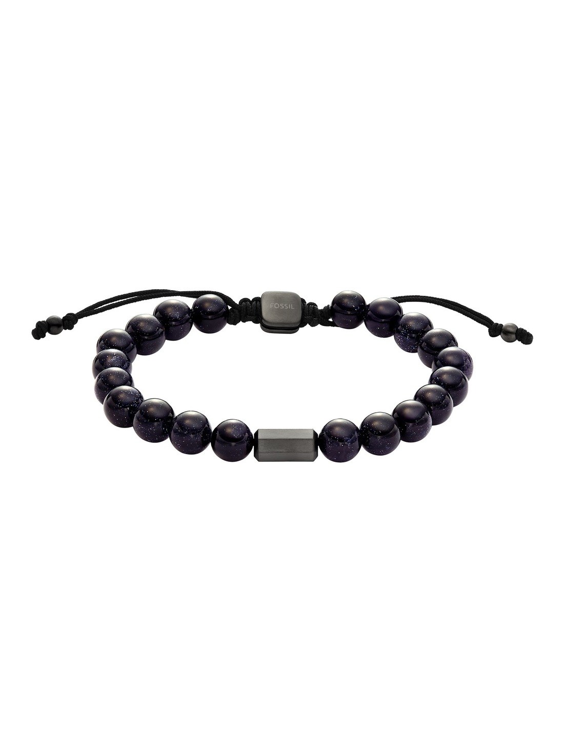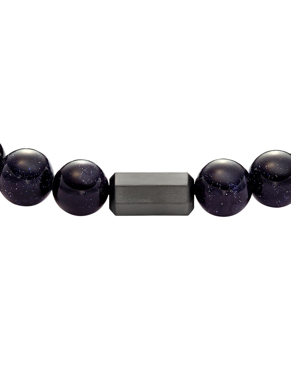 Short Description This beaded bracelet features navy reconstructed sandstone, gunmetal stainless steel and a slider closure.