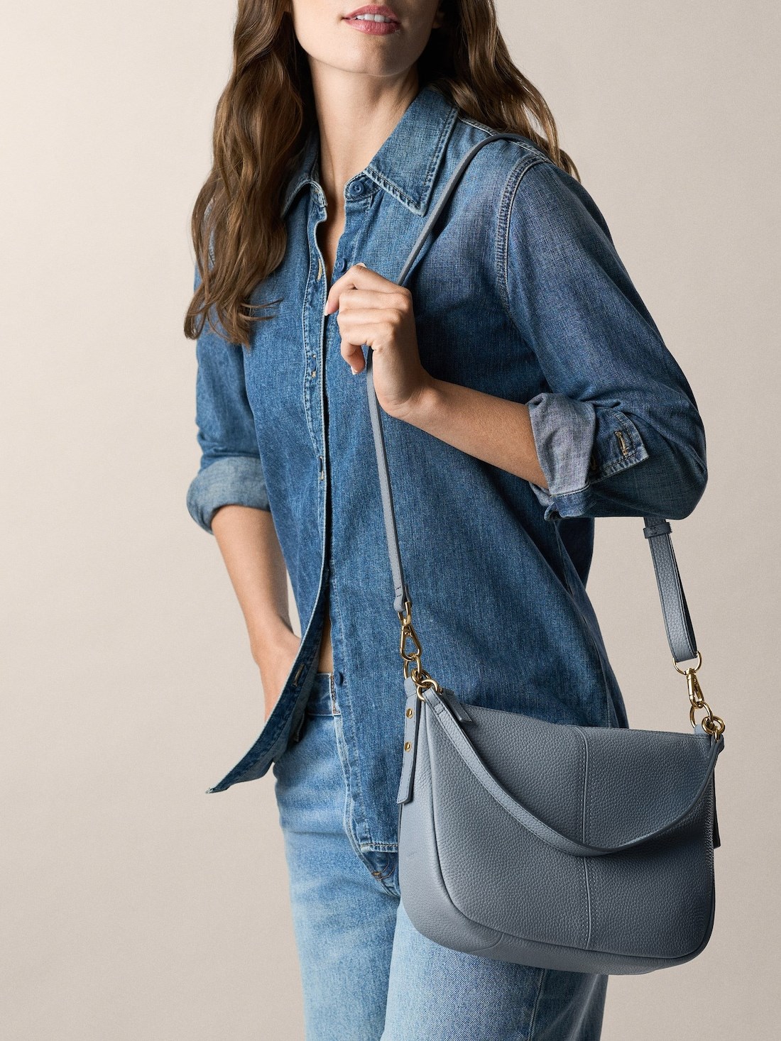 Short Description Crafted from leather, this versatile bag blends texture and detail effortlessly. The shoulder and adjustable crossbody strap ensure comfort and convenience. Designed with thoughtful compartments inside and out, it keeps essentials organized with a slide and zippered compartment inside.