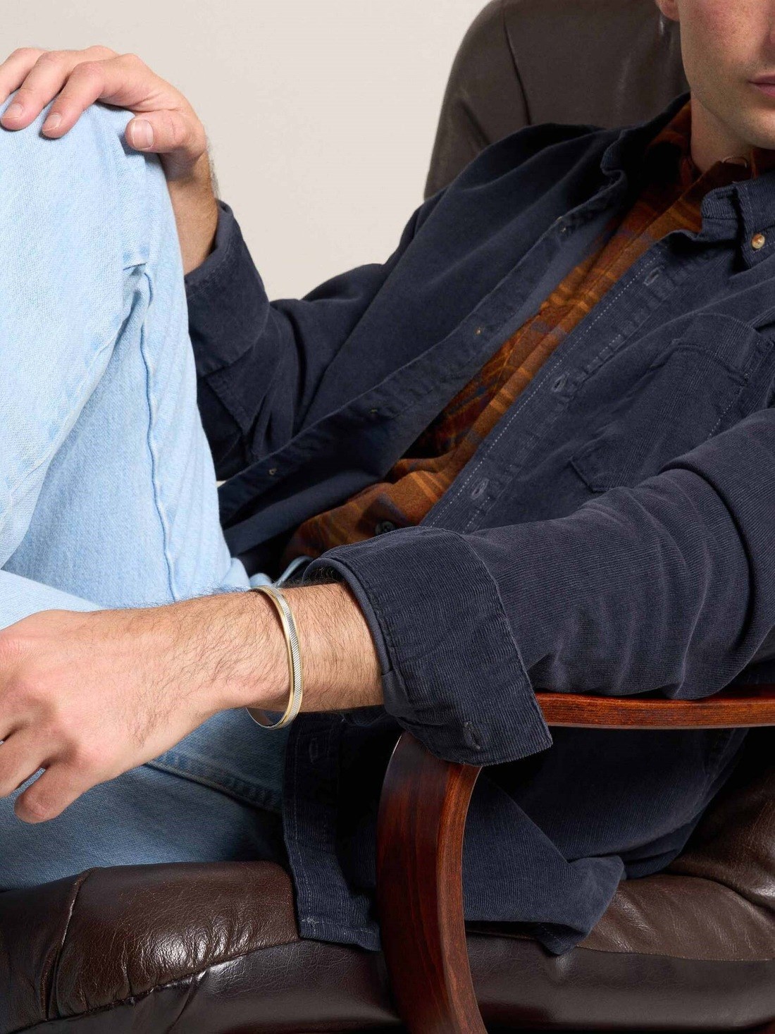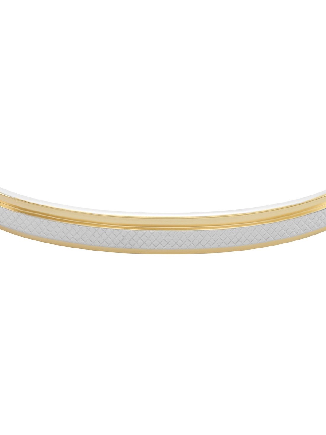 Short Description Knurled texture detailing meets a two-tone stainless steel finish in this modern cuff bracelet. Crafted with precision, the design combines subtle industrial elements and refined craftsmanship by pairing brushed silver-tone finish with polished gold-tone accents. Its open design ensures an effortless fit, making it a versatile accessory for everyday wear.