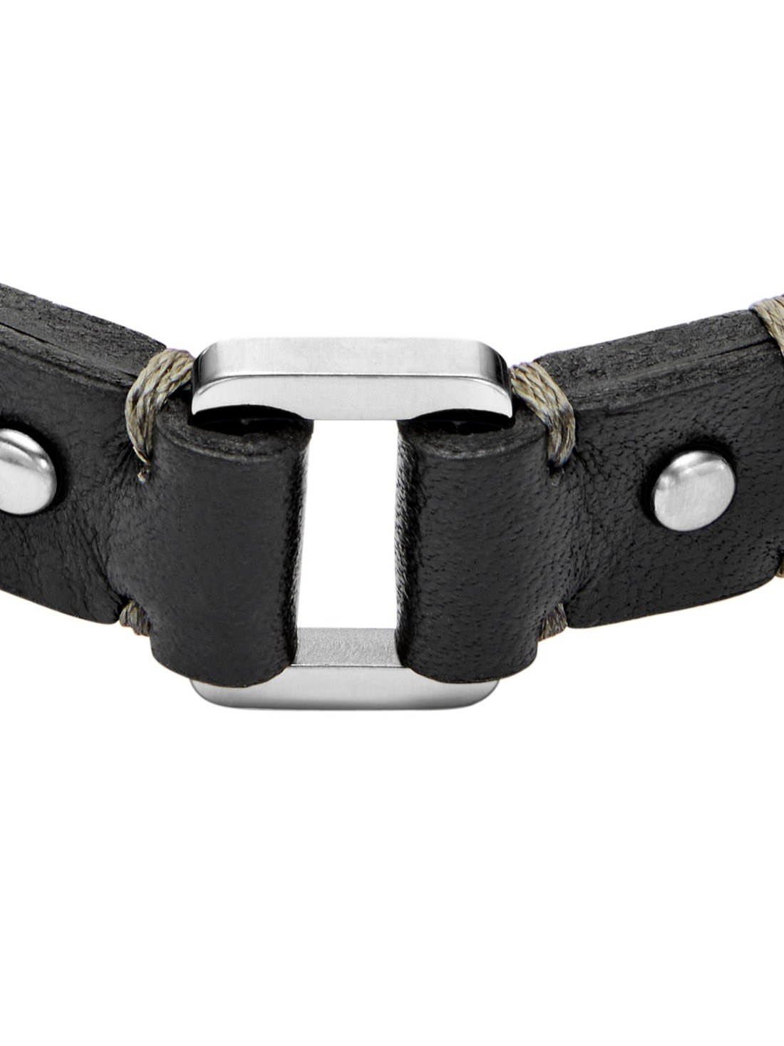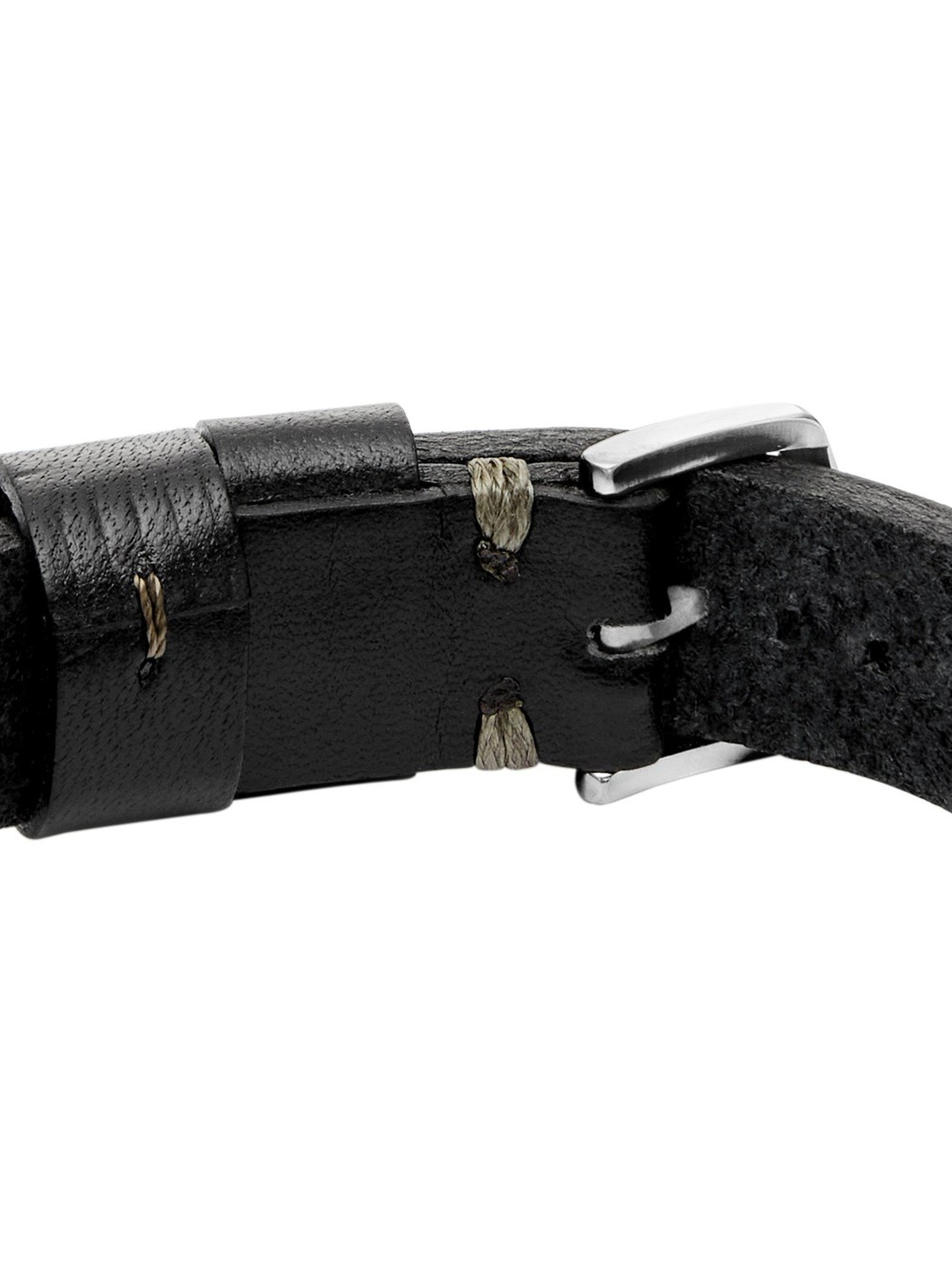 Short Description Inspired by classic American machinery, the Machine collection is rugged and built to last. The black leather strap offers natural texture that develops character over time, and is accented by a stainless steel square ring and collar pin detailing. The adjustable buckle ensures a secure, tailored fit. A true statement in industrial-inspired design.