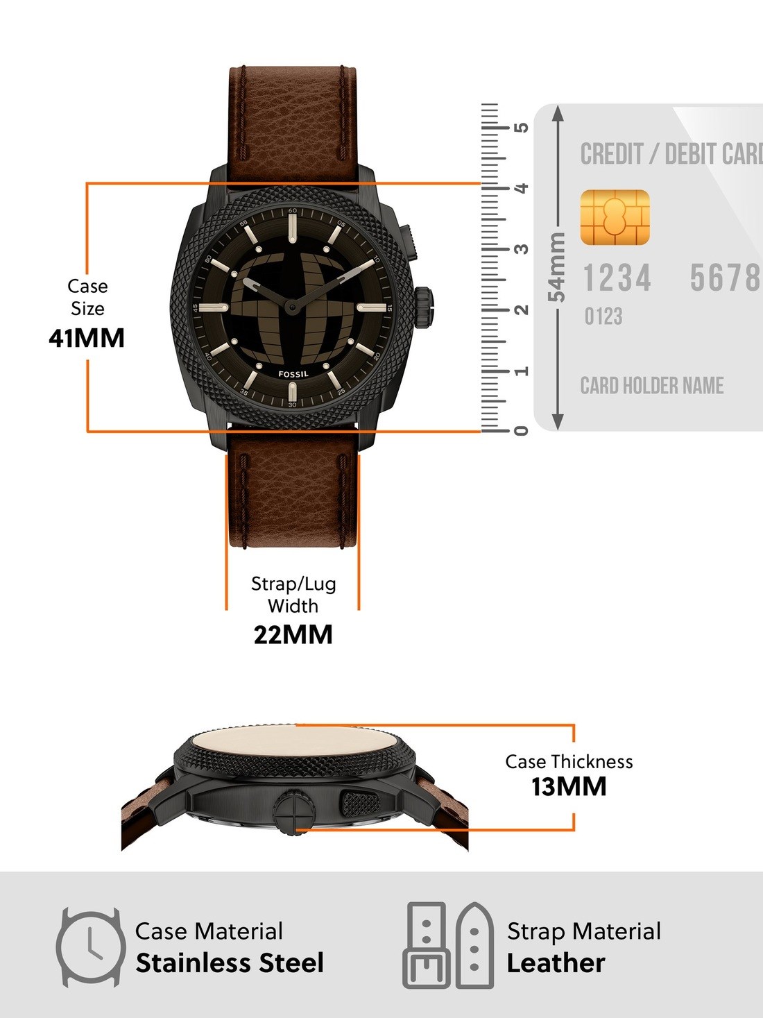 Watch Features fossil, fossil watches for men, men's fossil watches, leather watches for men, brown watches for men, anadigi/bigtic watches for men, machine, japan, japanese movement, men's rugged watches, men's engravable watches