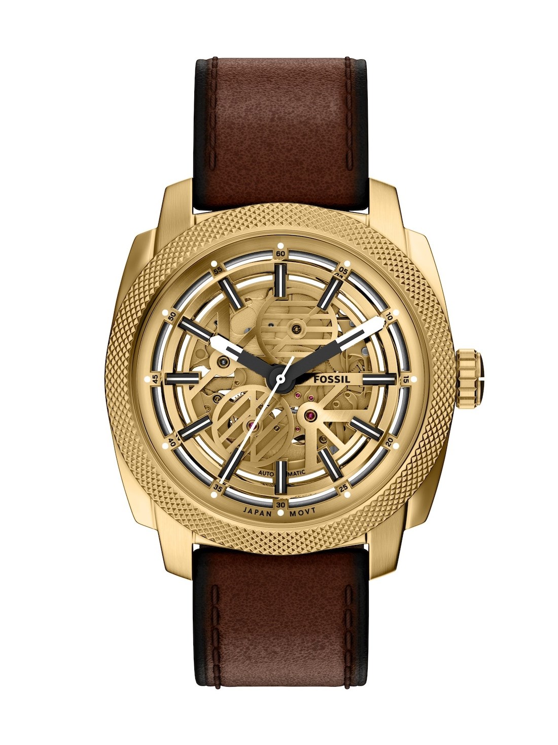 Watch Features fossil, fossil watches for men, men's fossil watches, leather watches for men, brown watches for men, automatic three hand watches for men, machine, japan, japanese movement, men's rugged watches