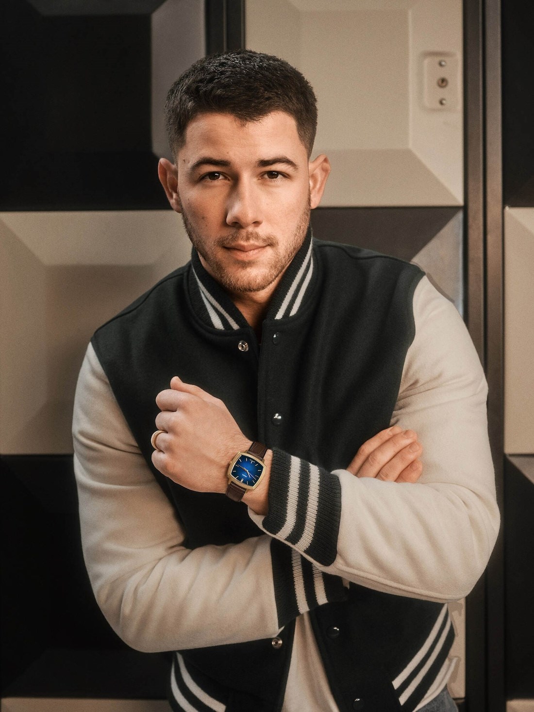 Short Description Designed in collaboration with Nick Jonas, this timepiece is a reimagined take on our bold and bestselling Machine collection. Enter Machine Luxe, featuring a 37mm statement shaped case inspired by Nick's distinct personal style, a croc-embossed leather strap, and a signature knurled bezel characteristic of every Machine watch. Finely etched lines fan out from the center of the dial, creating a radiant sunray texture in a striking blue vignette. 'We leaned into current trends,' says Nick. 'But we also wanted to create something that felt timeless.'