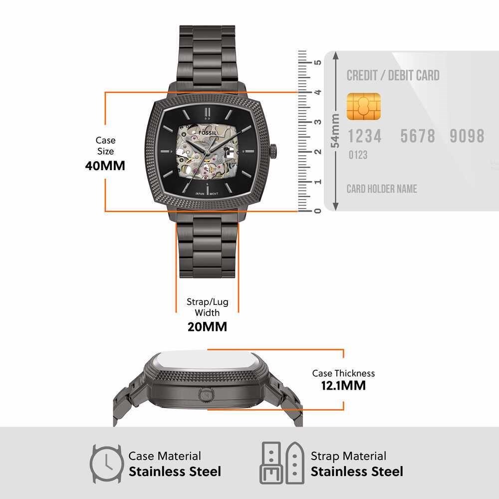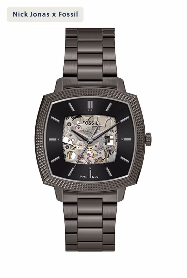 Watch Features fossil, fossil watches for unisex, unisex's fossil watches, stainless steel watches for unisex, automatic/3hand watches for unisex, smoke watches for unisex, machine luxe, japan, japan movement, nick jonas, shaped, numbered