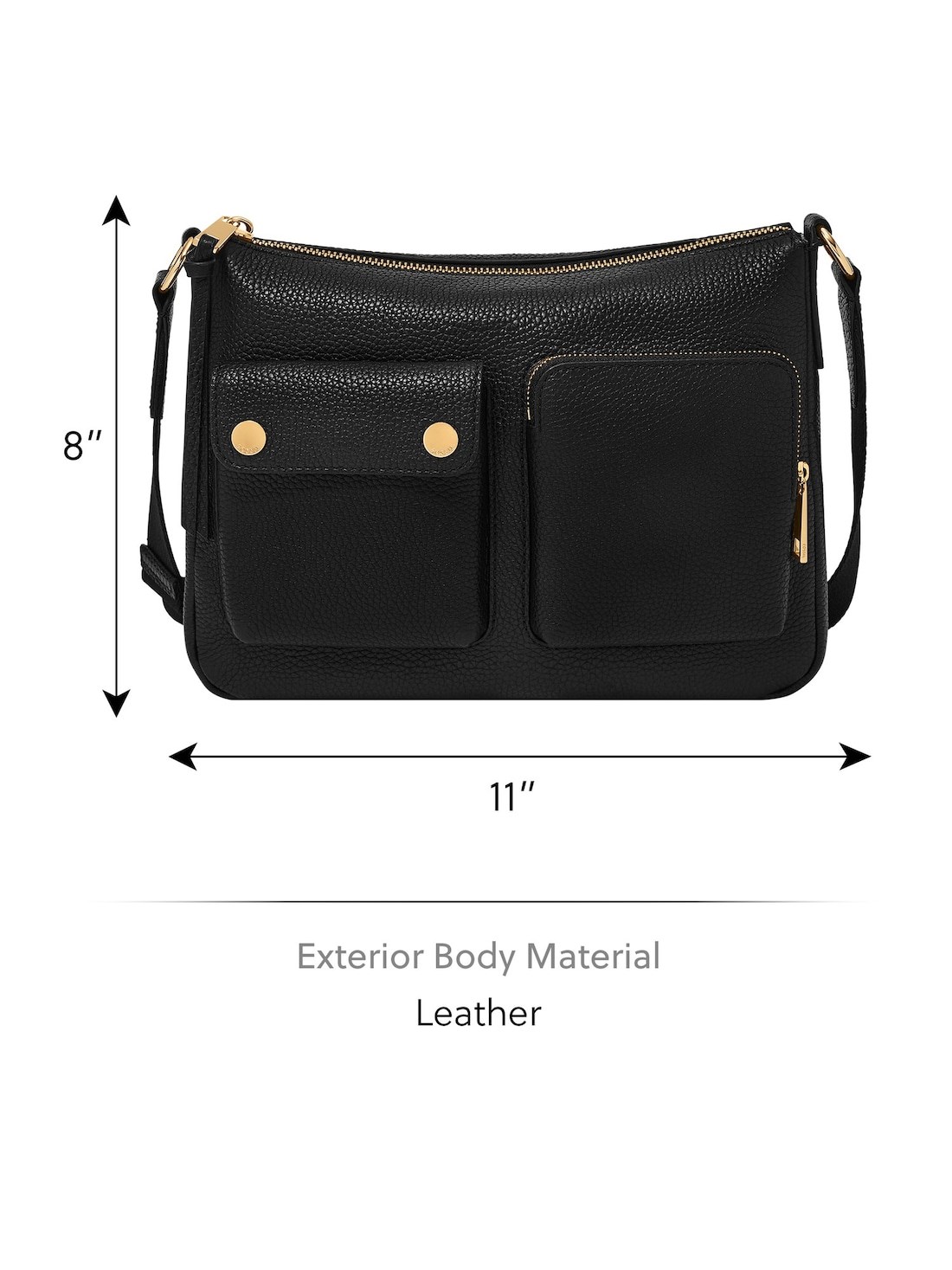 Perfectly proportioned: 11' L x 2' W x 8' H; Handle/Strap Details: 1 adjustable crossbody strap