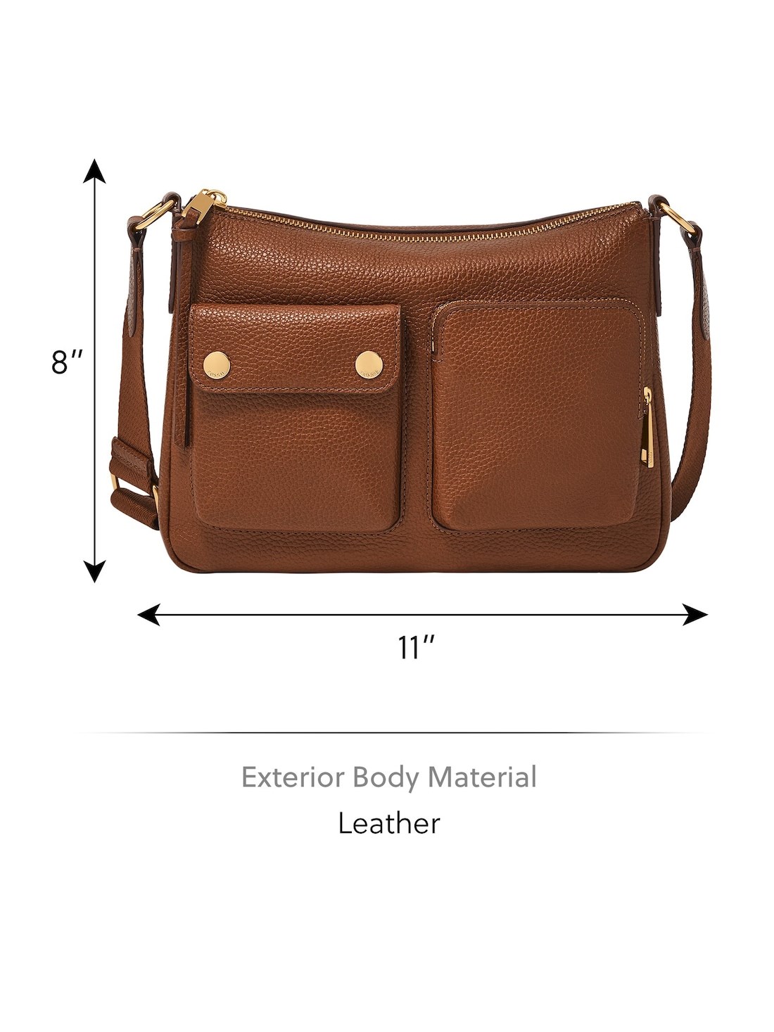 Perfectly proportioned: 11' L x 2' W x 8' H; Handle/Strap Details: 1 adjustable crossbody strap