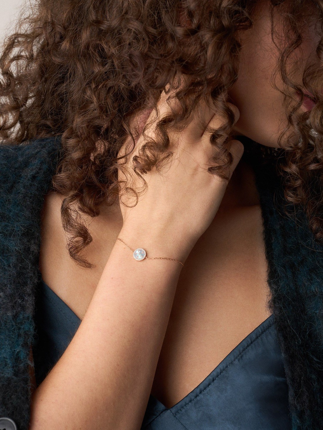 Short Description Refined and radiant, our Gray Mother-of-Pearl collection lends effortless elegance. The rose gold-tone stainless steel station bracelet features a lustrous mother-of-pearl station punctuated by sparkling crystals. Sliding adjustability ensures the perfect fit. Elevate any look with this timeless piece.