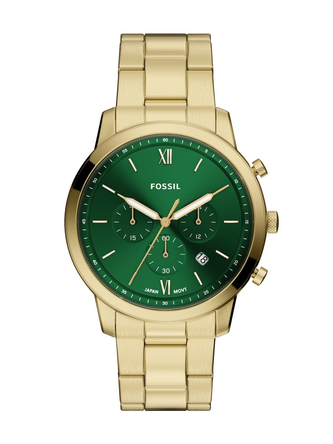 Watch Features fossil, fossil watches for men, men's fossil watches, stainless steel watches for men, gold watches for men, gold-tone watches for men, quartz chrono watches for men, neutra, engraving, japan, japanese movement, men's classic watches, men's engravable watches