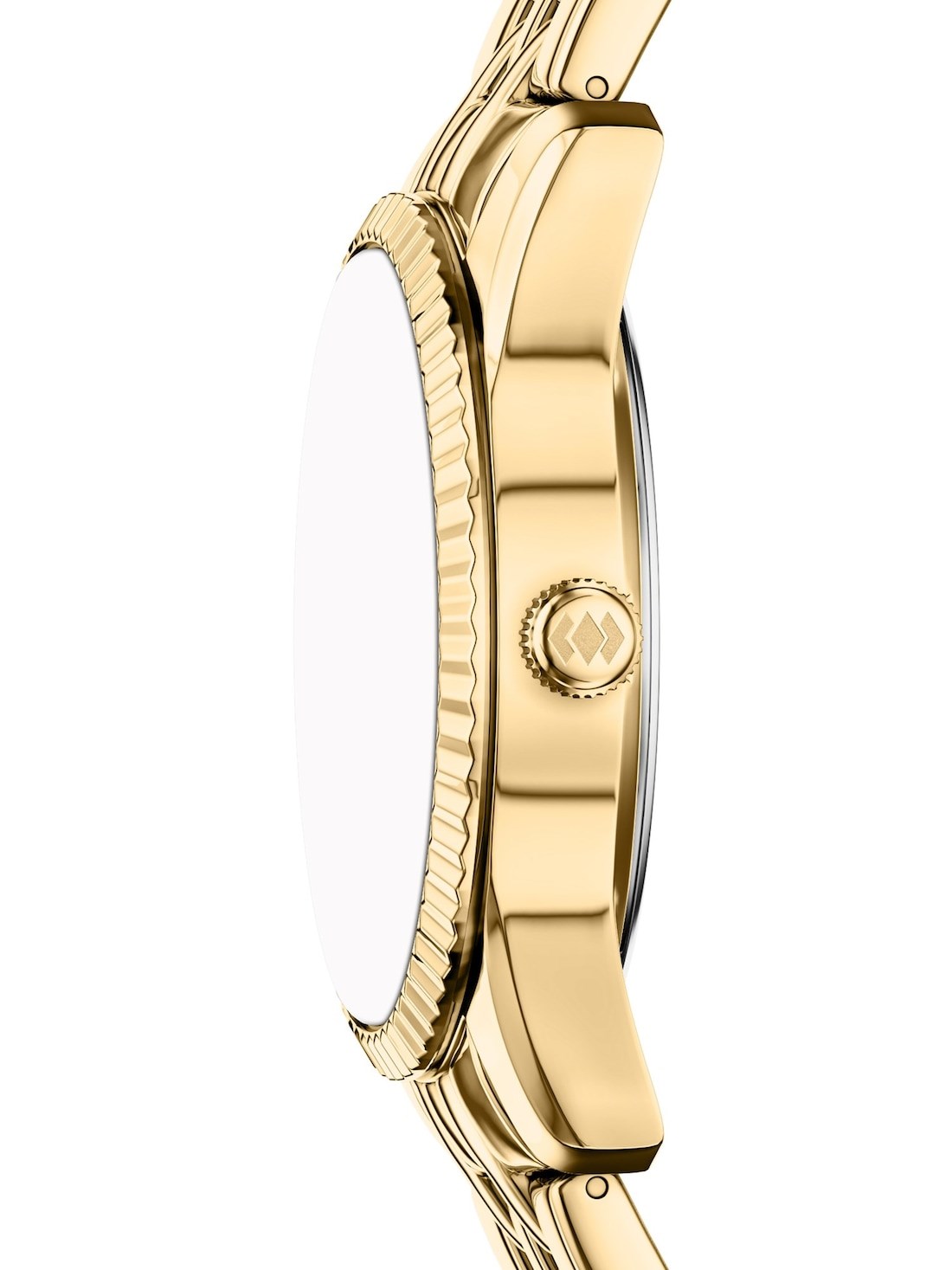 Watch Band: Gold durable stainless steel bracelet; links can be removed for a customized fit.