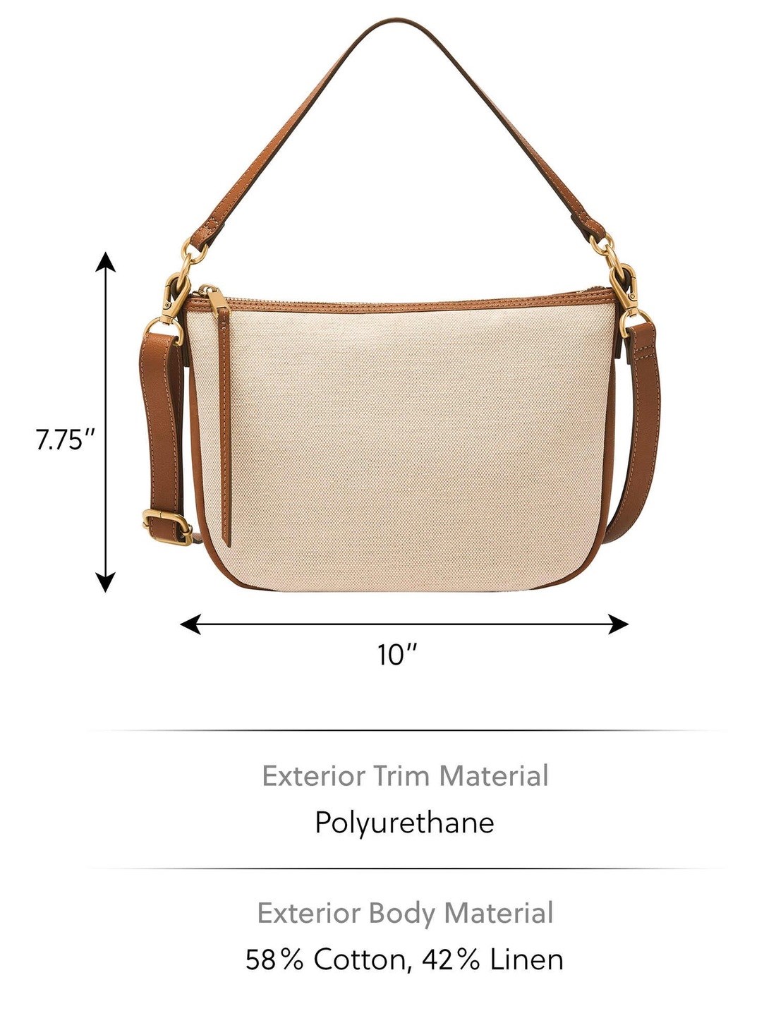 Short Description This cotton and linen crossbody features 1 zipper pocket, 2 slide pockets and 1 adjustable & detachable crossbody strap with 1 handle.