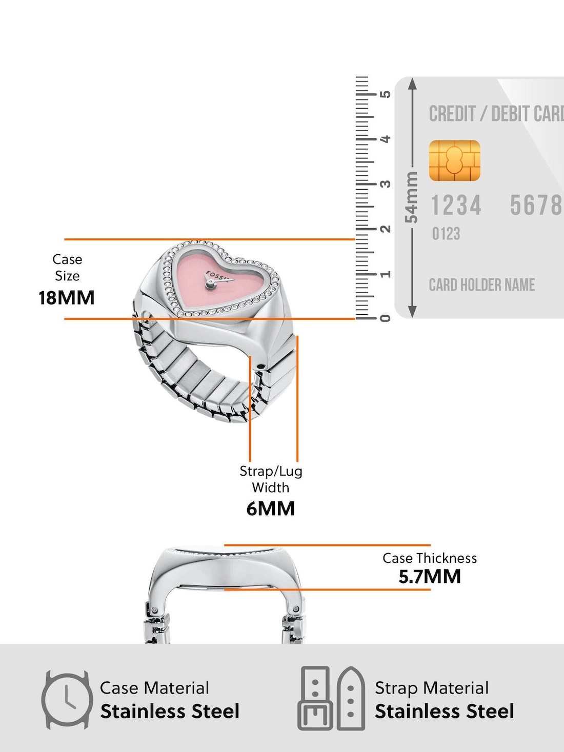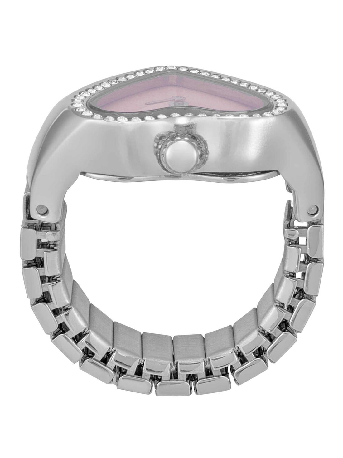 Short Description Reinvent your jewelry game with this sleek and stylish heart watch ring. Crafted from vibrant stainless steel with dazzling crystal accents, it balances timeless sophistication with modern flair. The vibrant glossy pink dial adds a radiant touch, while the flexible band to fits any finger. Slip it on for an effortless accent that elevates any look.