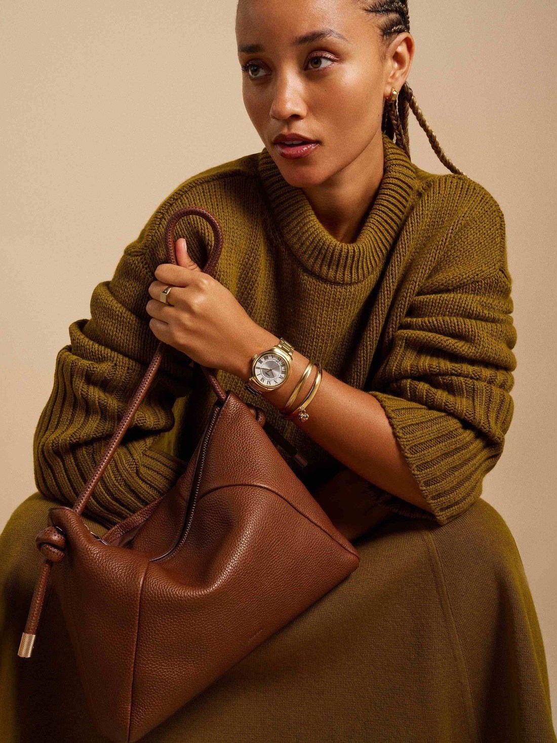 Short Description Introducing Willa: the effortlessly chic leather shoulder bag for the season. Crafted in medium brown leather, this sleek style balances elevated details—like a gleaming gold-tone knurled hardware and hand-knotted strap details—with minimalist lines. A back slide pocket lends function to keep your essentials handy, while inside, a roomy fabric-lined interior with a zip pocket keeps essentials organized. Fossil leather products support responsible manufacturing via the Leather Working Group.