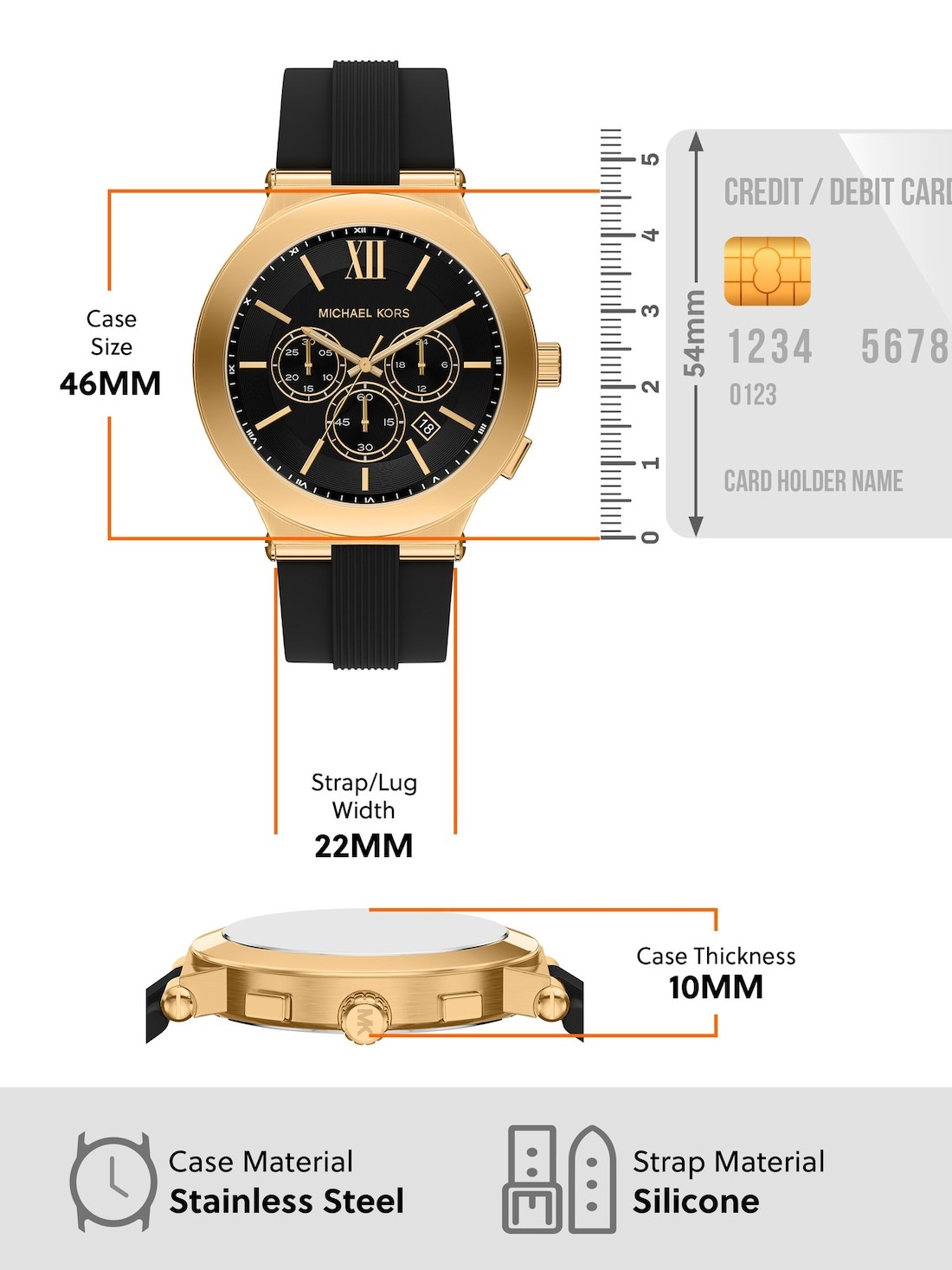 Watch Features mk, michael kors, michael kors watches for men, men's michael kors watches, silicone watches for men, black watches for men, billie, quartz chronograph, japan, japanese movement